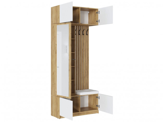 Прихожая Бостон поможет создать уютную обстановку в небольшом помещении. Открытая секция включает крючки для верхней одежды и мягкое сиденье, а закрытые отделения подойдут для хранения сезонной одежды. Большое зеркало визуально расширит пространство и сделает интерьер завершенным.