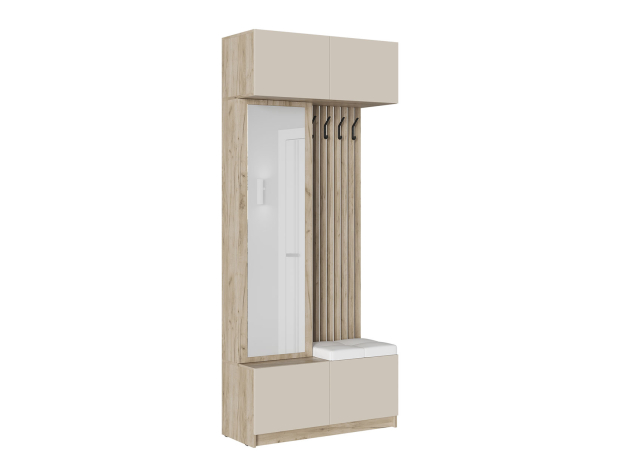 Прихожая Бостон поможет создать уютную обстановку в небольшом помещении. Открытая секция включает крючки для верхней одежды и мягкое сиденье, а закрытые отделения подойдут для хранения сезонной одежды. Большое зеркало визуально расширит пространство и сделает интерьер завершенным.