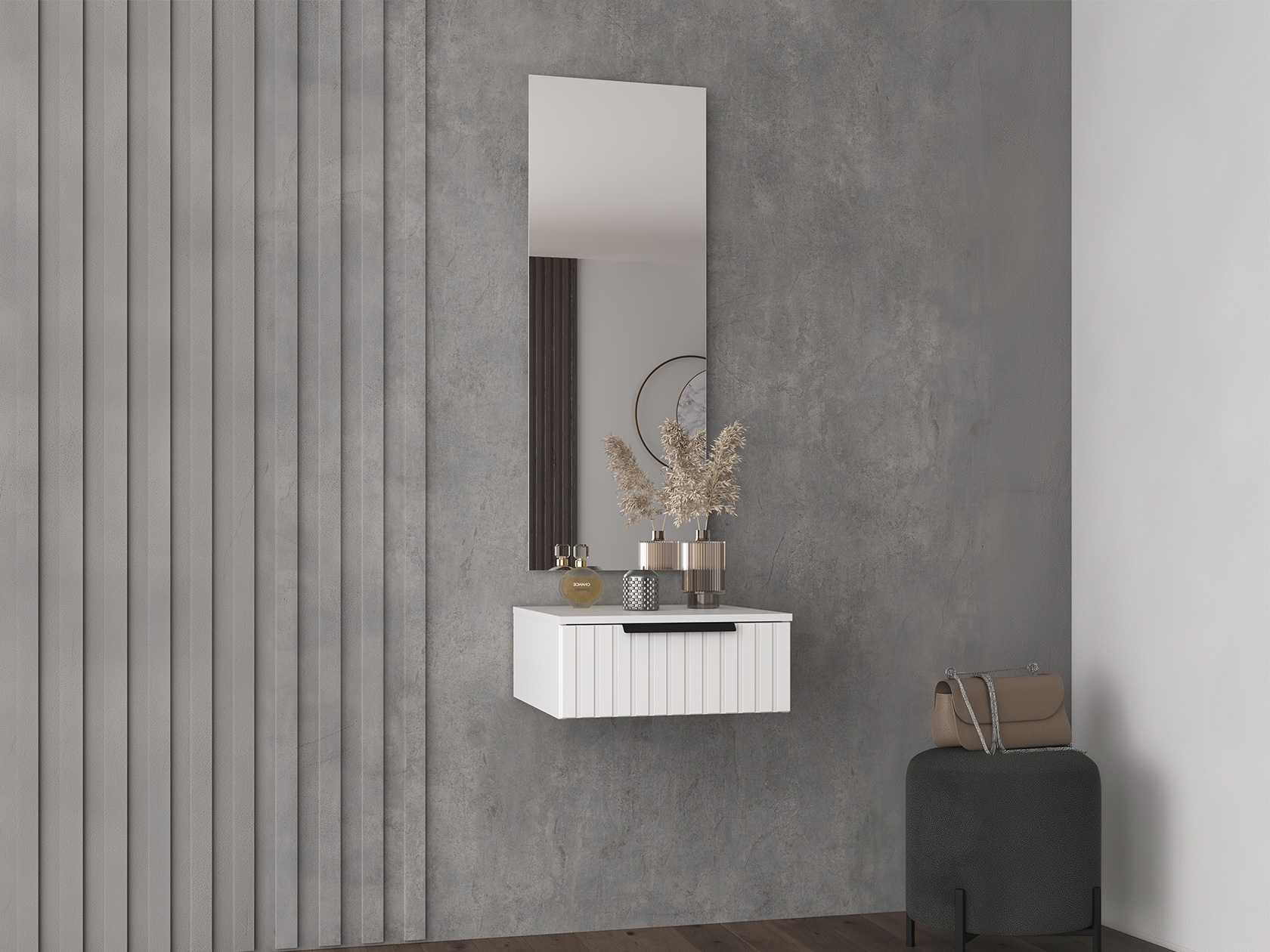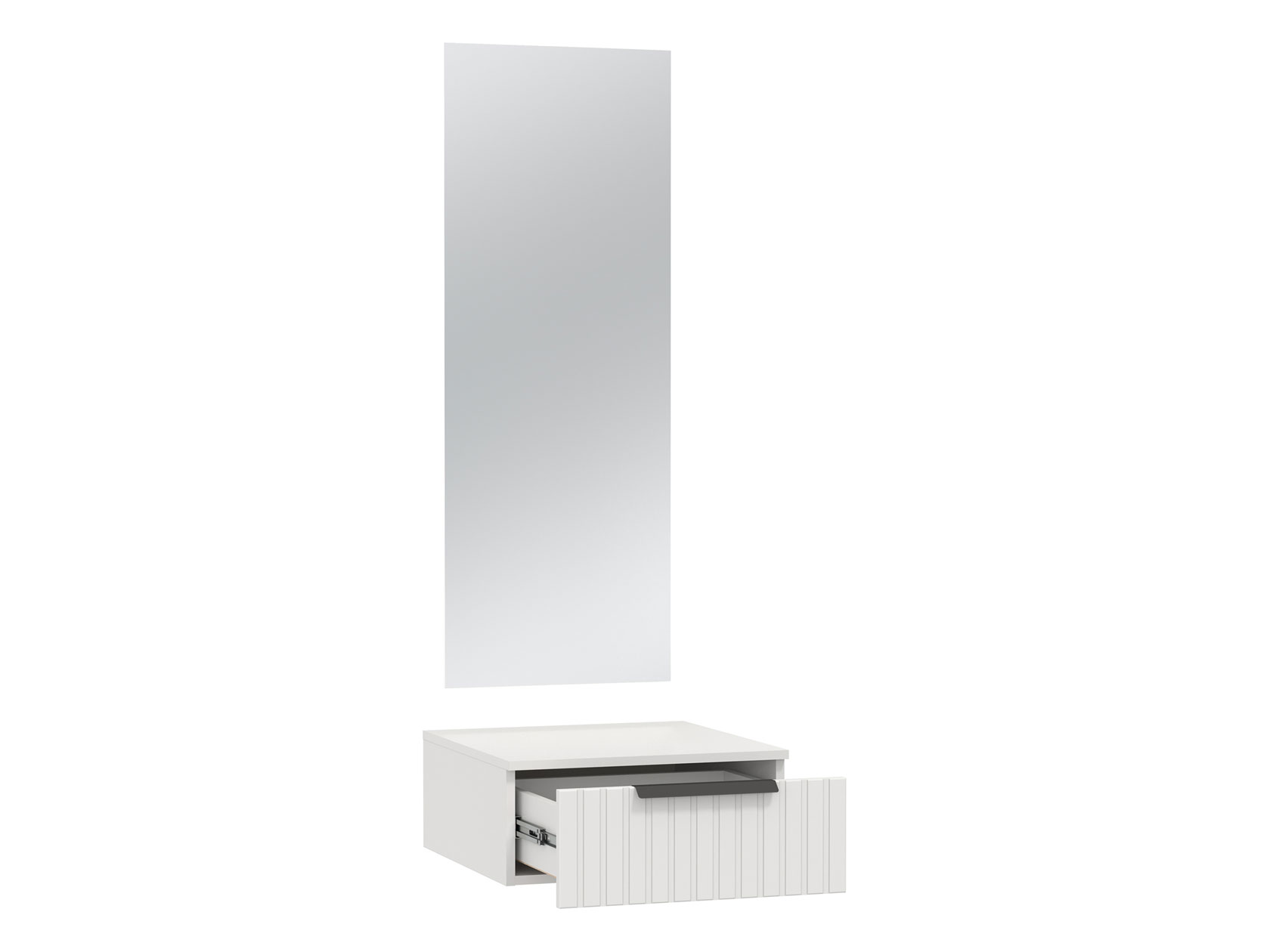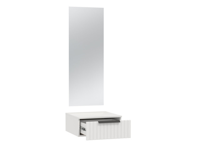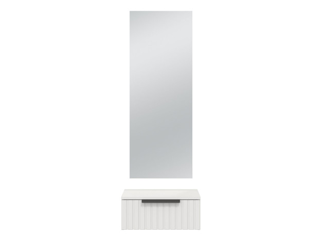 Прихожая Брандо Эйр — оптимальное решение для небольшого коридора. Парящая конструкция экономит пространство и создает визуально легкий интерьер. Выдвижной ящик скроет разные мелочи, а поверхность станет площадкой для декора. Вертикальная фрезеровка и лаконичная ручка добавляют интерьеру небольшие акценты.