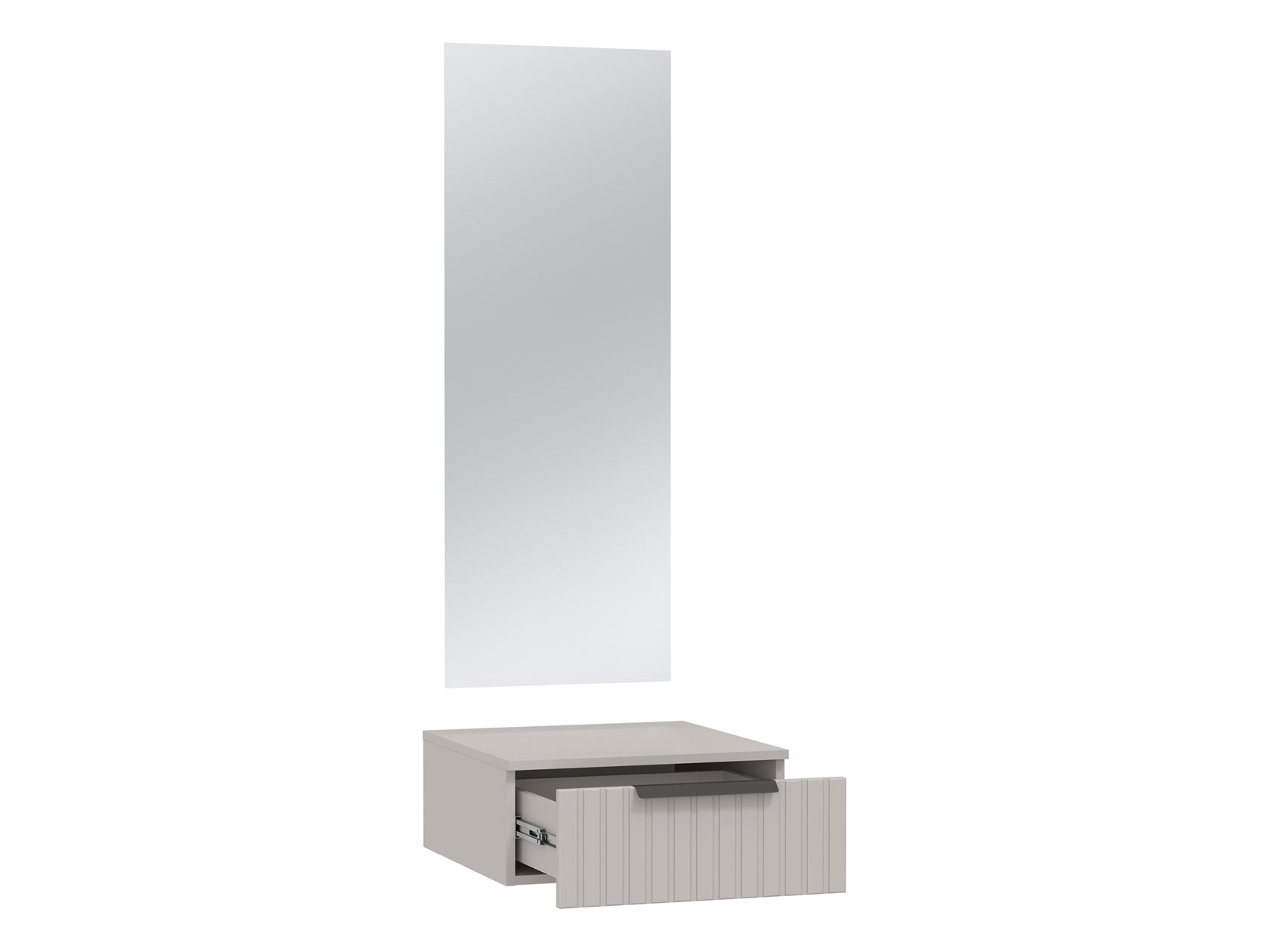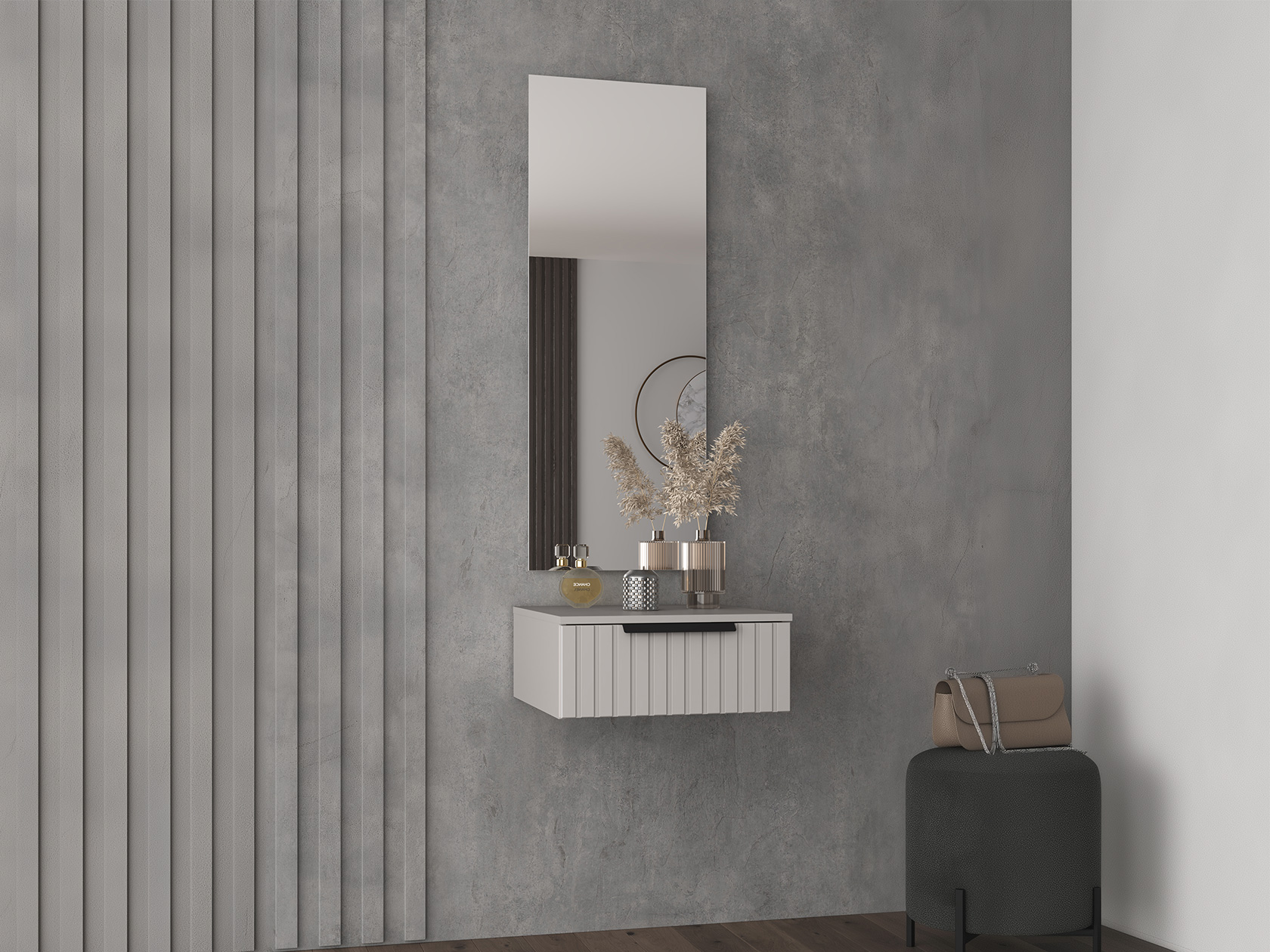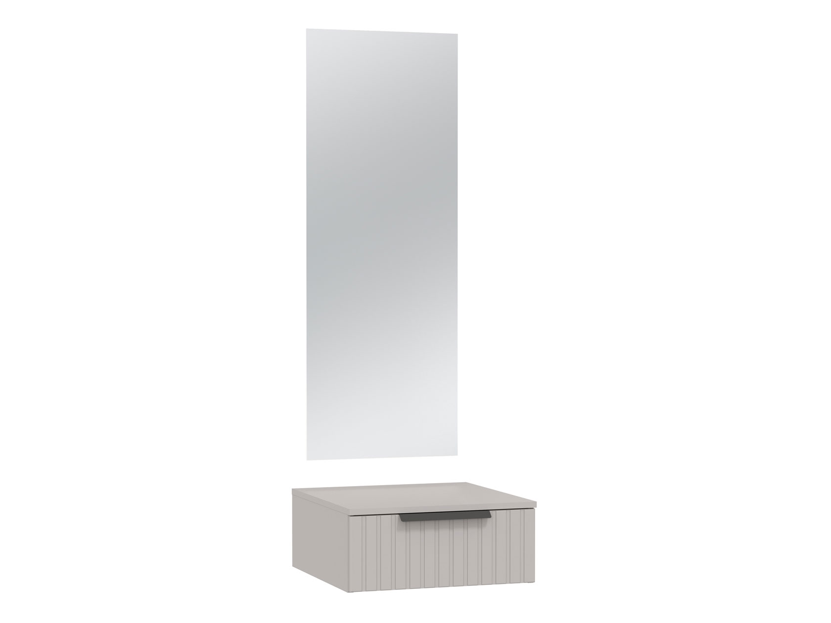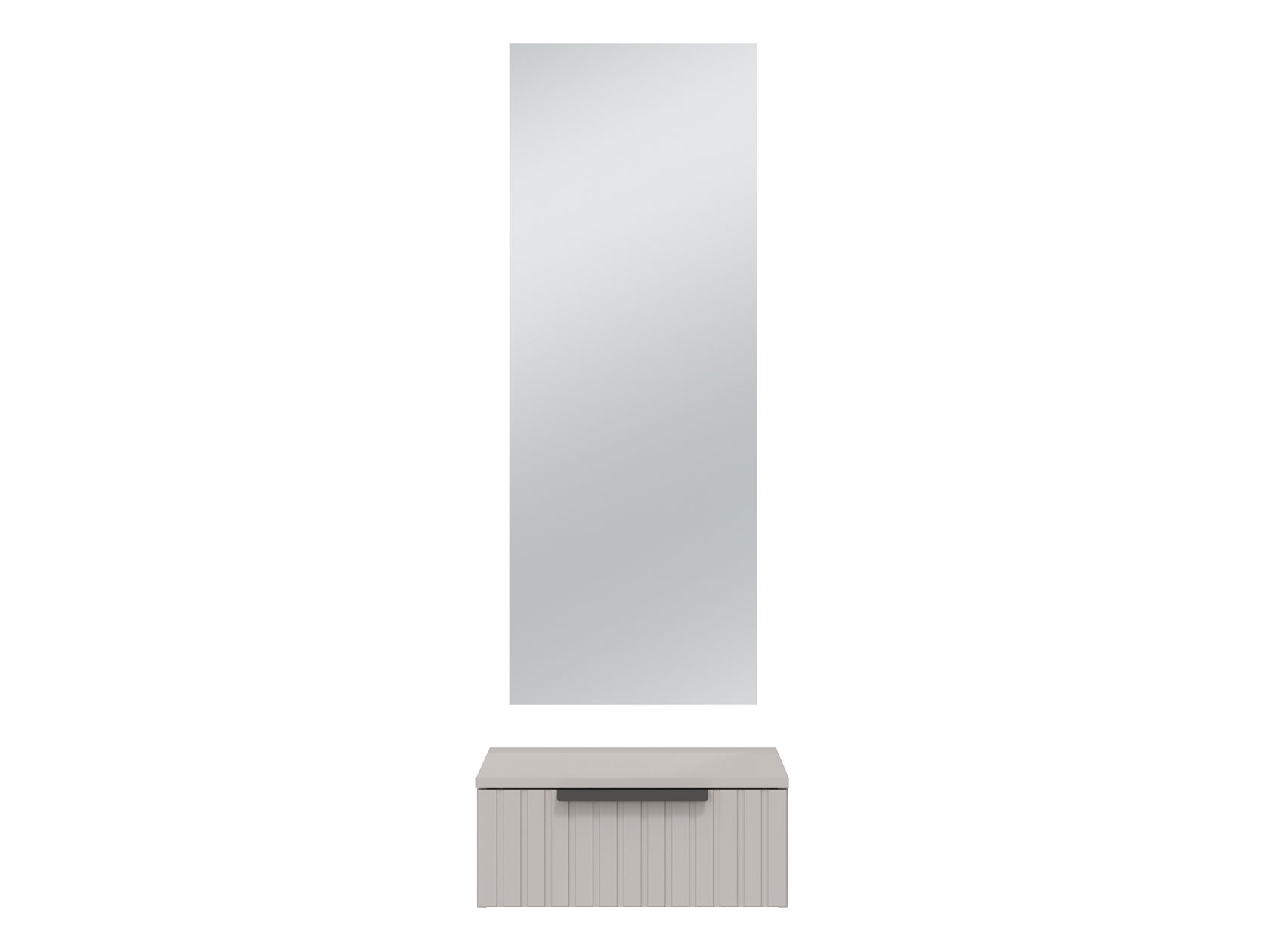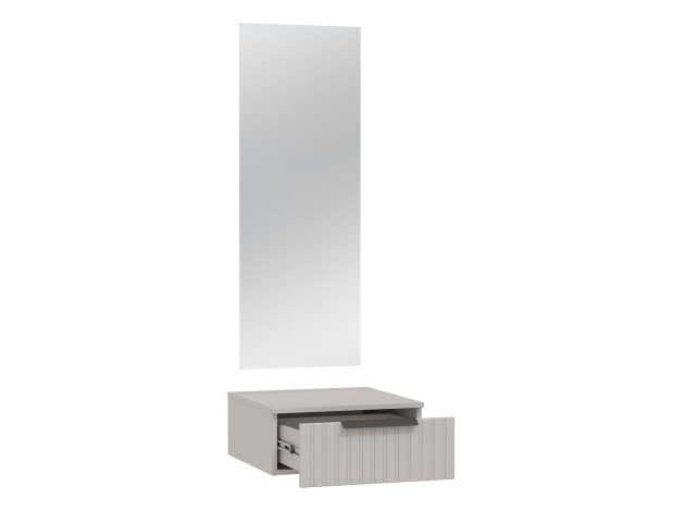 Прихожая Брандо Эйр — оптимальное решение для небольшого коридора. Парящая конструкция экономит пространство и создает визуально легкий интерьер. Выдвижной ящик скроет разные мелочи, а поверхность станет площадкой для декора. Вертикальная фрезеровка и лаконичная ручка добавляют интерьеру небольшие акценты.