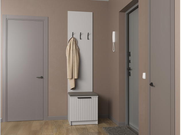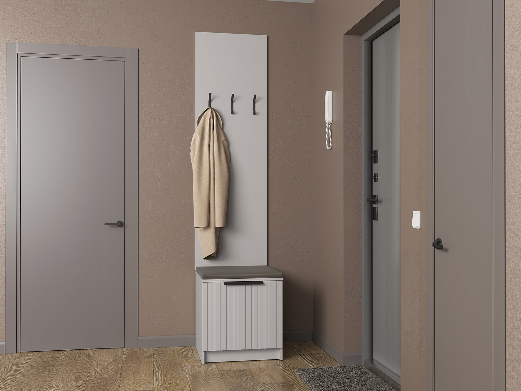 Прихожая Брандо Практик позволит обустроить входную зону в небольшой квартире. Вешалка с прочными крючками обеспечит место для верхней одежды и сумок. Тумба с откидной дверцей поможет расположить несколько пар обуви. Вертикальные линии на фасаде добавят пространству стильный акцент.