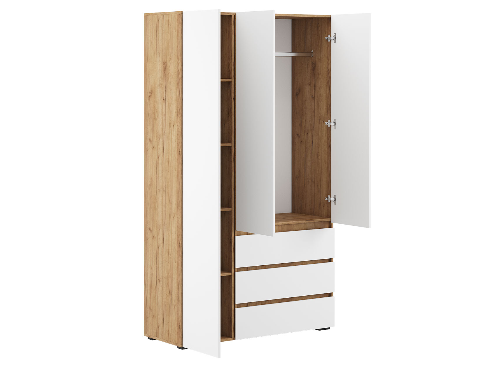 Прихожая Элли Макси обеспечит достаточно места для всех вещей и обуви. Большой шкаф подходит для хранения курток, плащей и коробок. Открытая вешалка с крючками помогает держать под рукой сезонные предметы гардероба. Комод с зеркалом станет завершающим штрихом интерьера, организуя порядок среди важных мелочей. Дверцы и ящики без лицевой фурнитуры открываются легким нажатием на фасад.