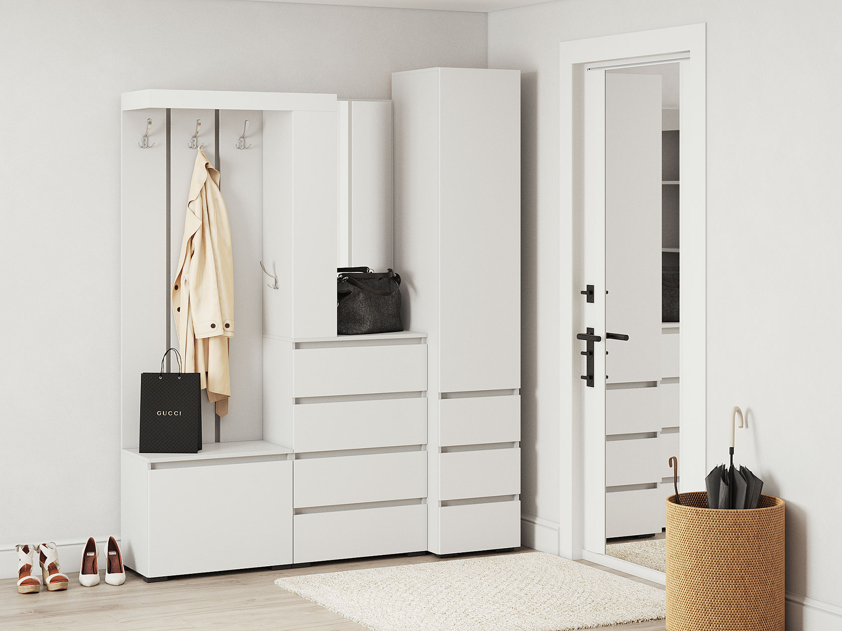 Прихожая Элли с зеркалом Белый