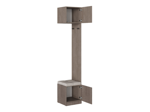 Прихожая Кантри с антресолями и зеркалом поможет обустроить комфортную входную зону. Элементы обеспечат место для сезонной и повседной одежды, обуви, аксессуаров и сумок. Удобная банкетка позволит с комфортом надеть домашние тапочки или переобуться перед выходом из дома.