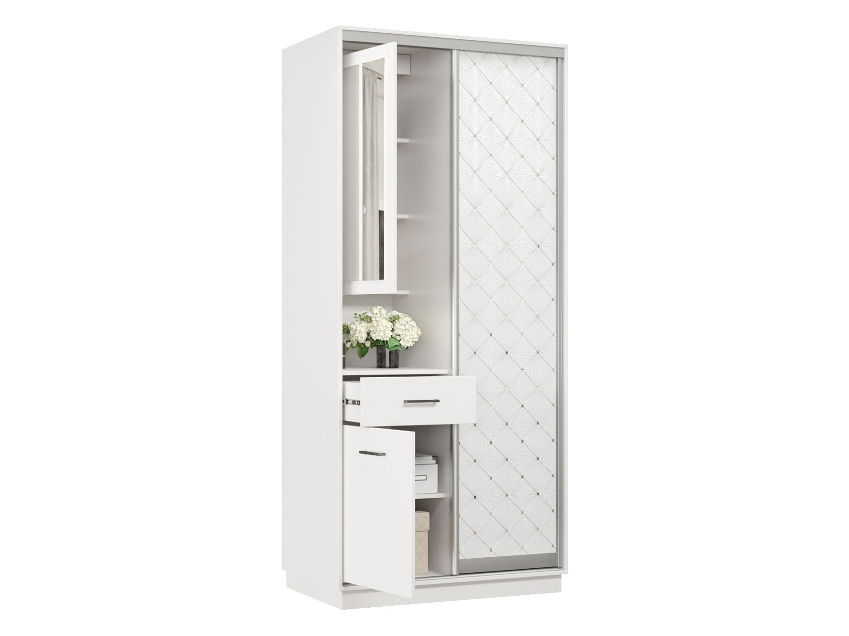 Прихожая Маршал Белый / Белый ромб 220 см 100 см 60 см Левая