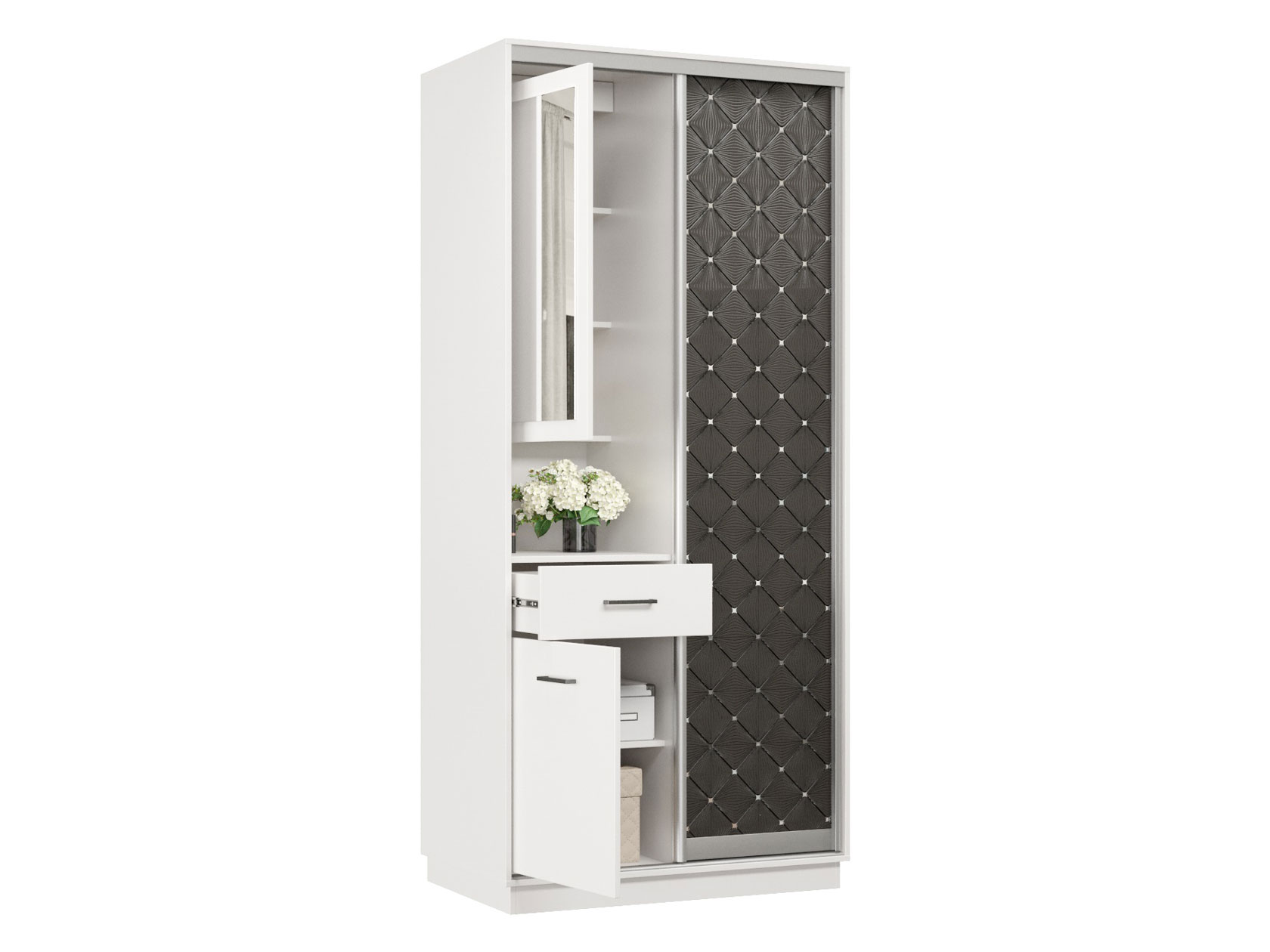 Прихожая Маршал Белый / Черный ромб 240 см 100 см 60 см Левая