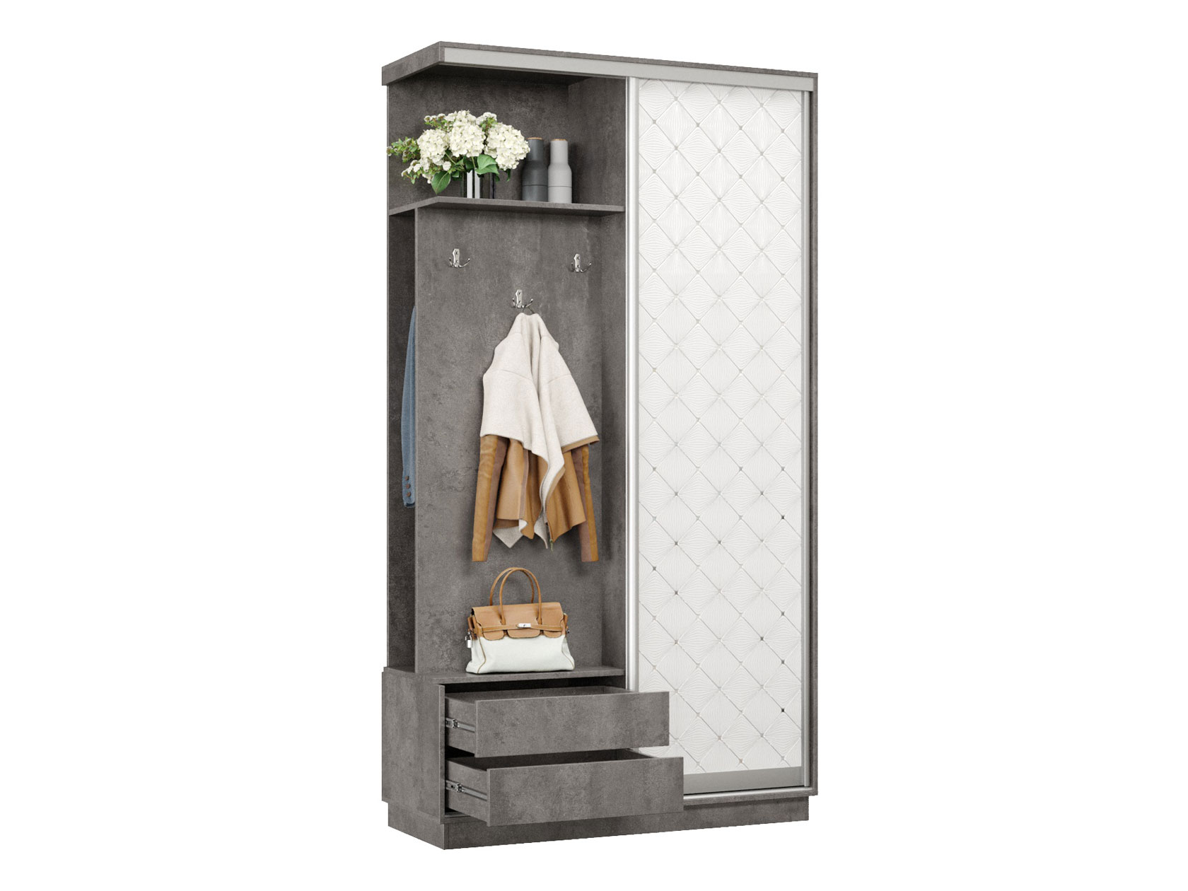 Прихожая Маршал Бетон / Белый ромб 220 см 120 см 45 см Левая