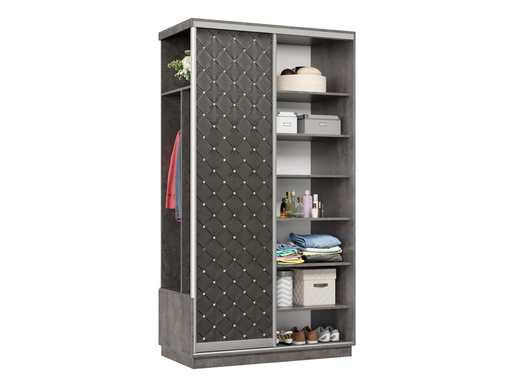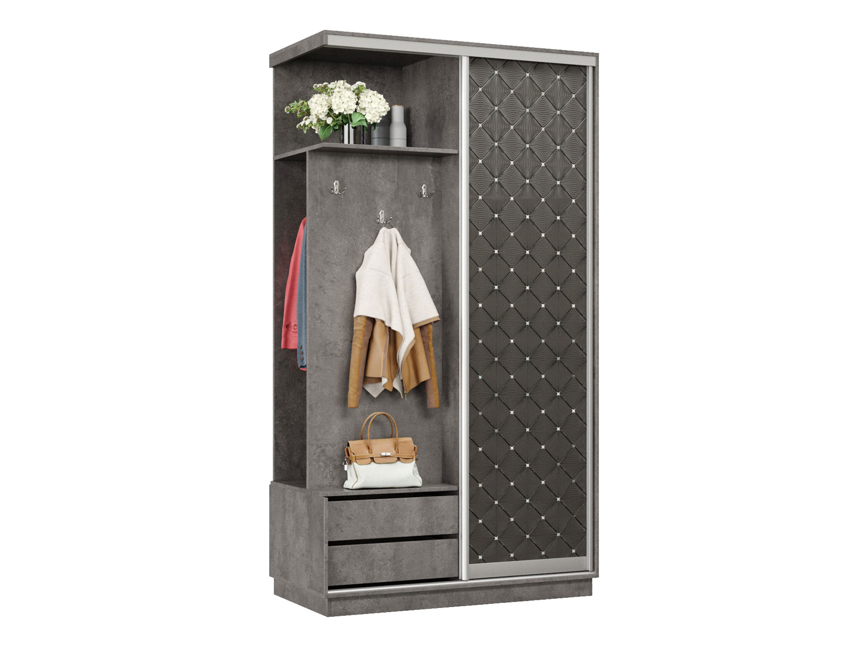 Прихожая Маршал Бетон / Черный ромб 220 см 120 см 60 см Левая