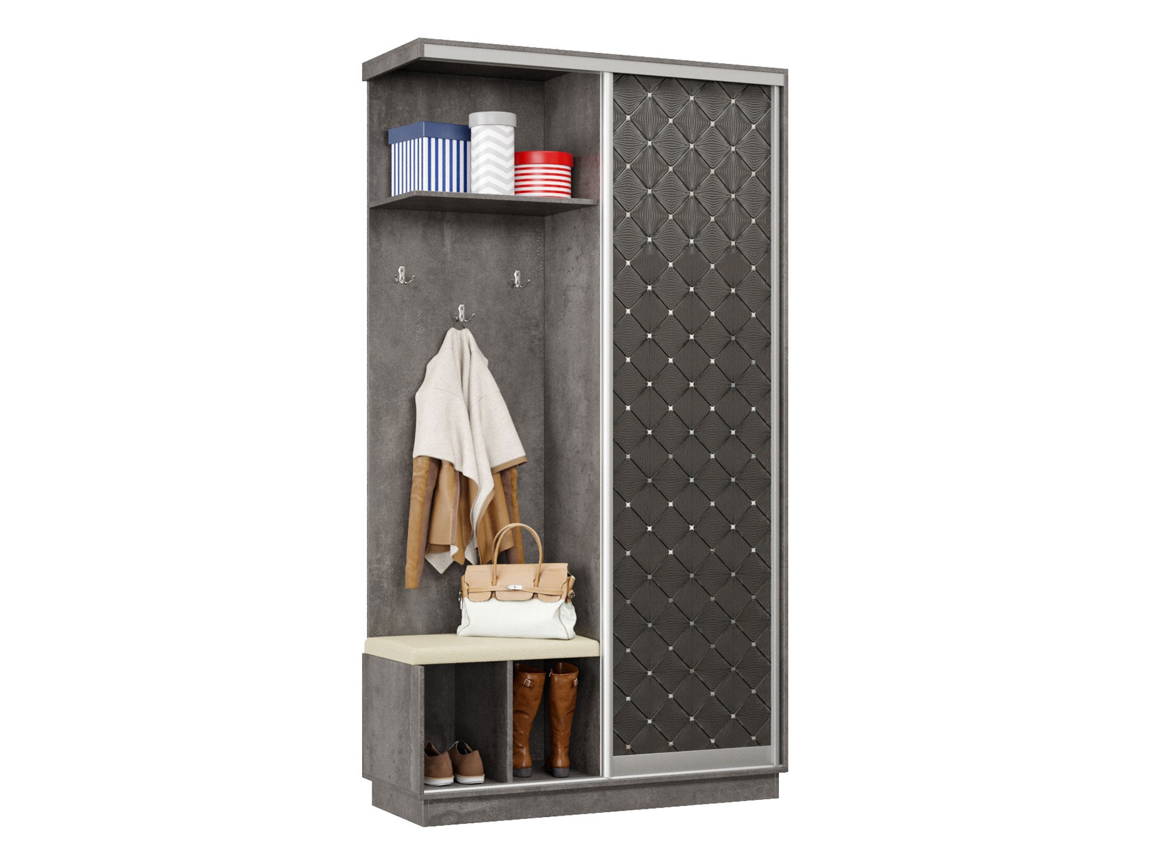 Прихожая Маршал Лайт Бетон / Черный ромб / Белый, экокожа 240 см 120 см 45 см Левая
