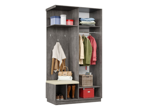• Прихожая Маршал Лайт — оптимальное решение для создания уютной и функциональной входной зоны. Комбинированная конструкция организует оптимальное хранение всех предметов гардероба: закрытая секция подойдет для сезонной одежды, ниша с крючками позволит держать под рукой повседневные вещи. Мягкое сиденье добавит комфорта при переобувании.