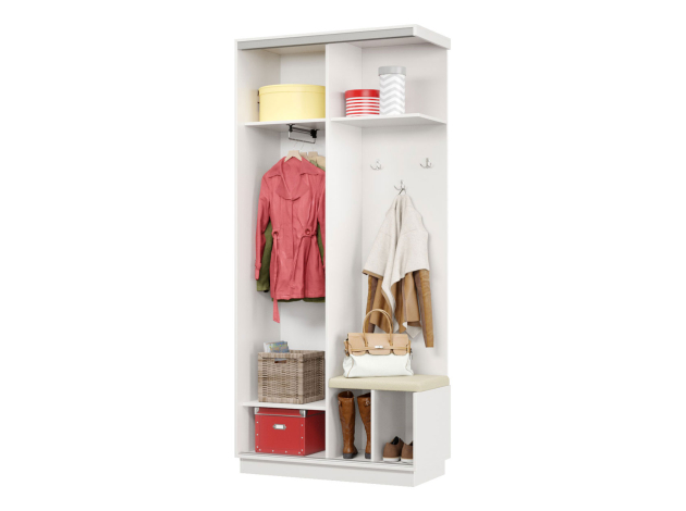 • Прихожая Маршал Лайт — оптимальное решение для создания уютной и функциональной входной зоны. Комбинированная конструкция организует оптимальное хранение всех предметов гардероба: закрытая секция подойдет для сезонной одежды, ниша с крючками позволит держать под рукой повседневные вещи. Мягкое сиденье добавит комфорта при переобувании.