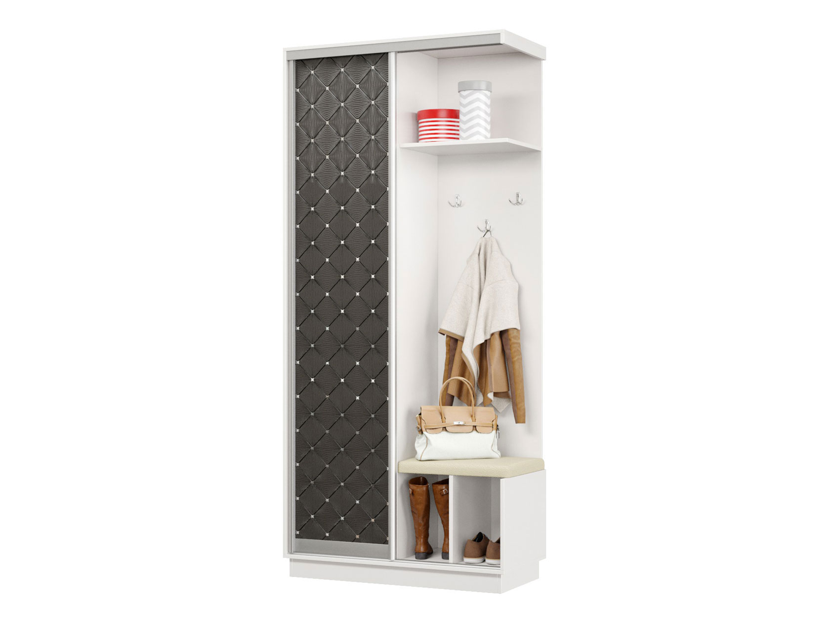 Прихожая Маршал Лайт Белый / Черный ромб / Белый, экокожа 220 см 100 см 45 см Правая