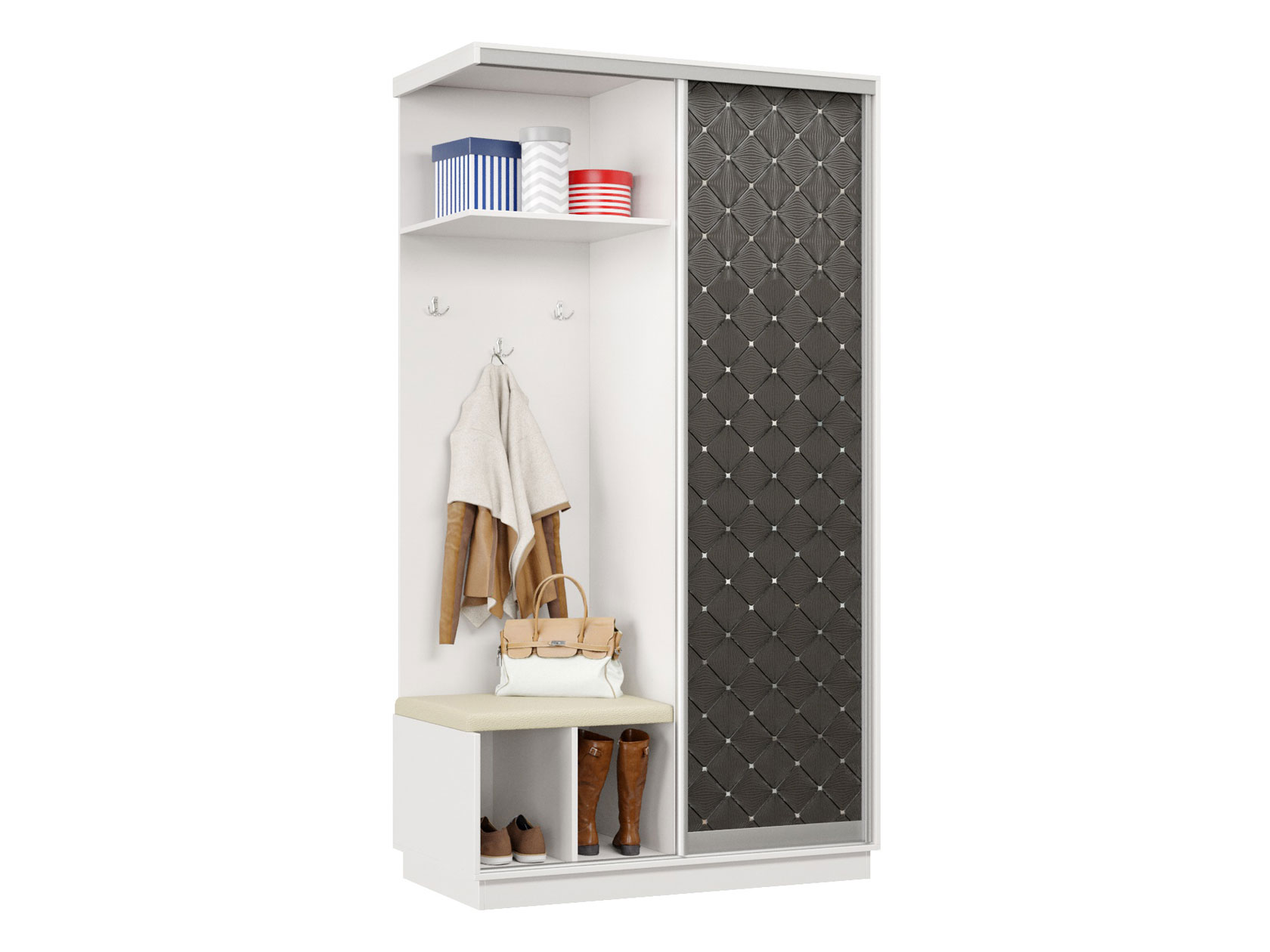 Прихожая Маршал Лайт Белый / Черный ромб / Белый, экокожа 240 см 120 см 60 см Левая