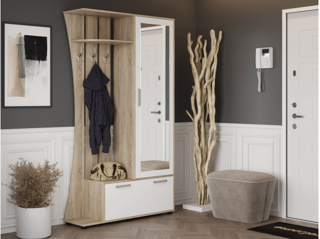 Прихожая Домино объединила в себе оптимальный функционал и компактные габариты — то, что нужно для небольшого помещения. Высокое зеркало визуально расширяет пространство, добавляет света и помогает всегда хорошо выглядеть перед выходом из дома.