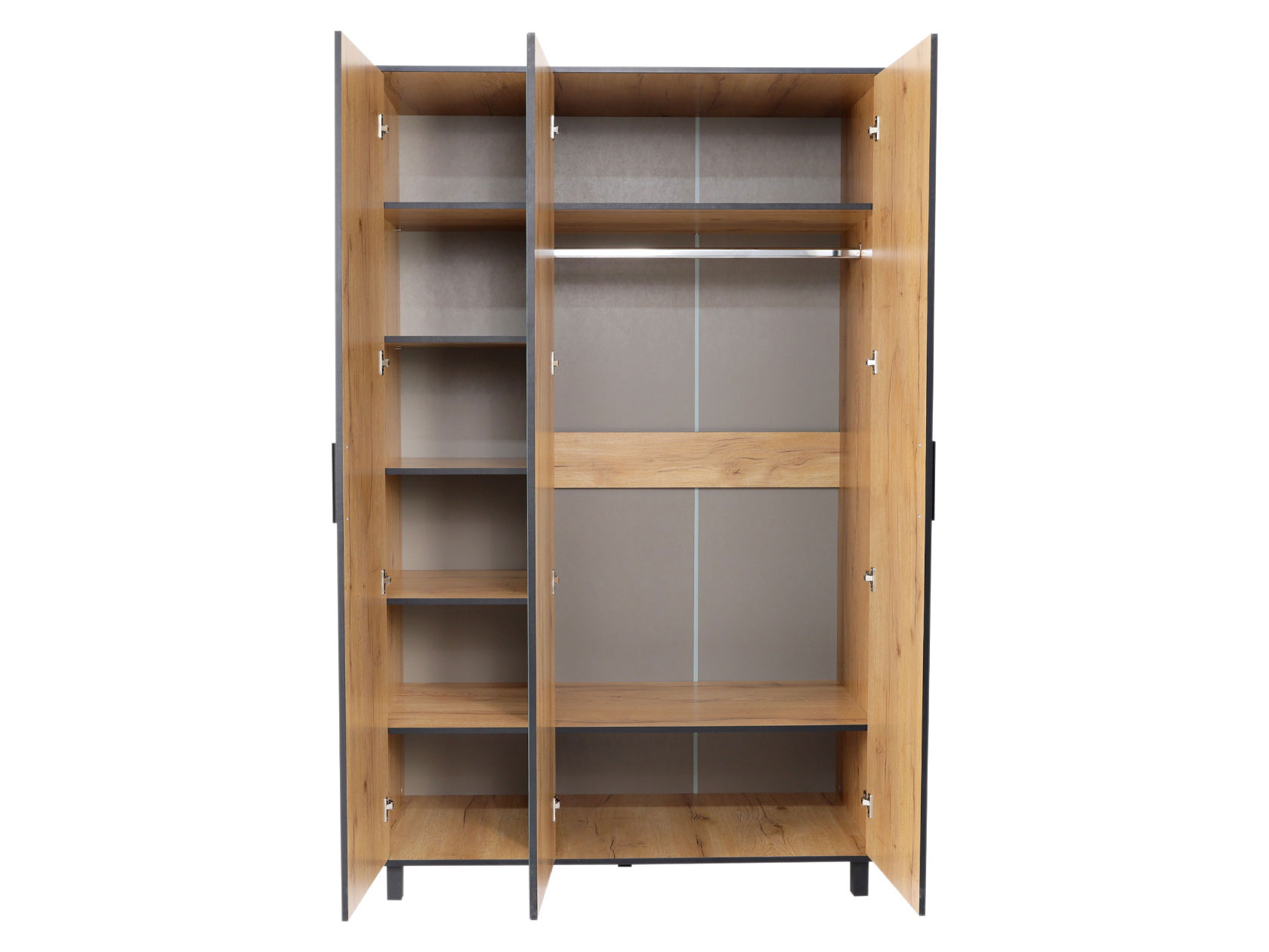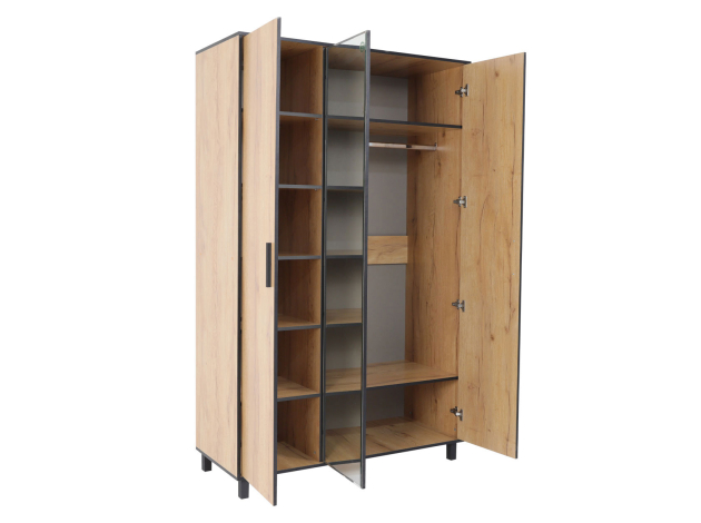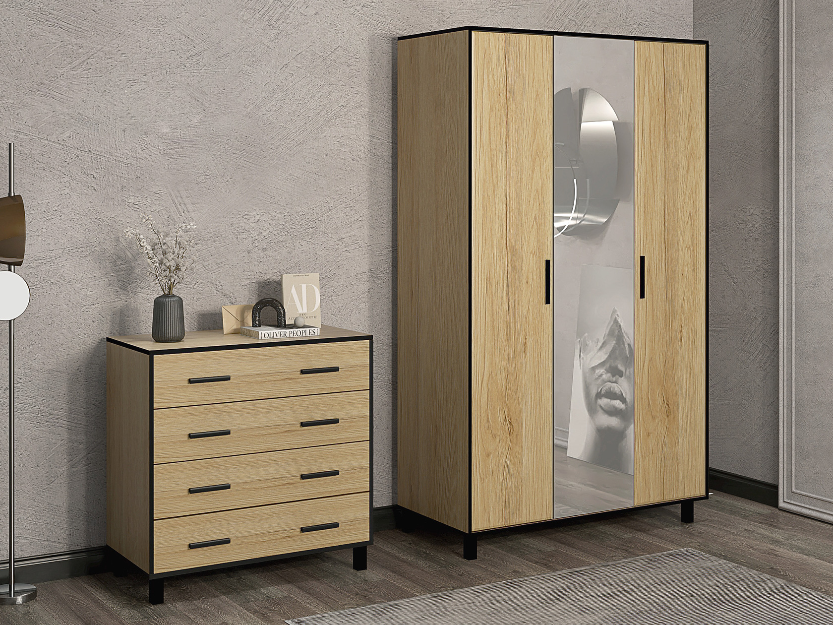 Прихожая Лофт расширит возможности для хранения гардероба. Распашной шкаф обеспечит место для сезонной и повседневной одежды. Комод позволит держать под рукой ключи, очки, косметику и другие полезные мелочи, которые требуются перед выходом из дома. Фасады с текстурой дерева придают нотки теплоты и уюта, а зеркальная вставка делает коридор визуально просторнее.