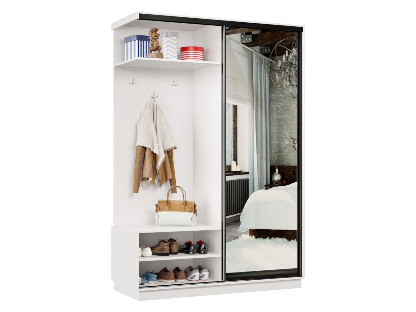 Прихожая Маршал 01 Стандарт Белый / Зеркало / Черный муар, алюминий 220 см 100 см 60 см Левая