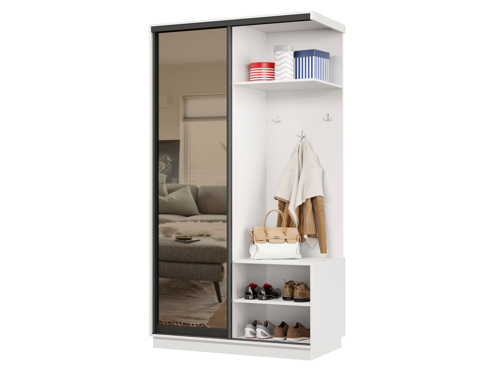 Прихожая Маршал с открытой вешалкой Белый / Зеркало бронза / Черный муар, алюминий 240 см 100 см 60 см Правая