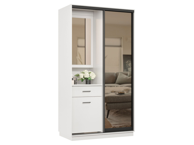 Прихожая Маршал 01 Комби Белый / Зеркало бронза / Черный муар, алюминий 220 см 100 см 60 см Левая