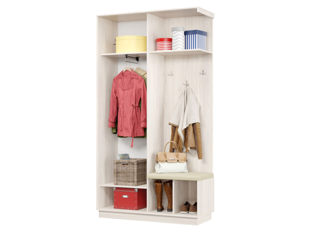Прихожая Маршал 08 с мягким сиденьем Ясень анкор светлый / Серебро, алюминий / Бежевый, экокожа 240 см 120 см 45 см Правая