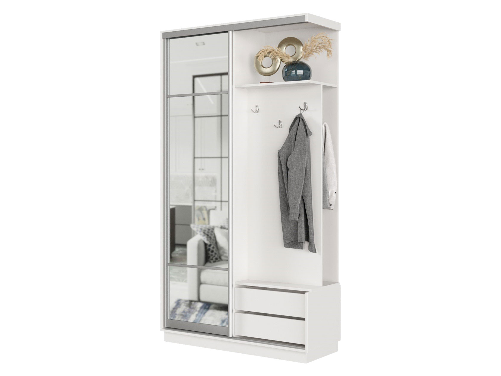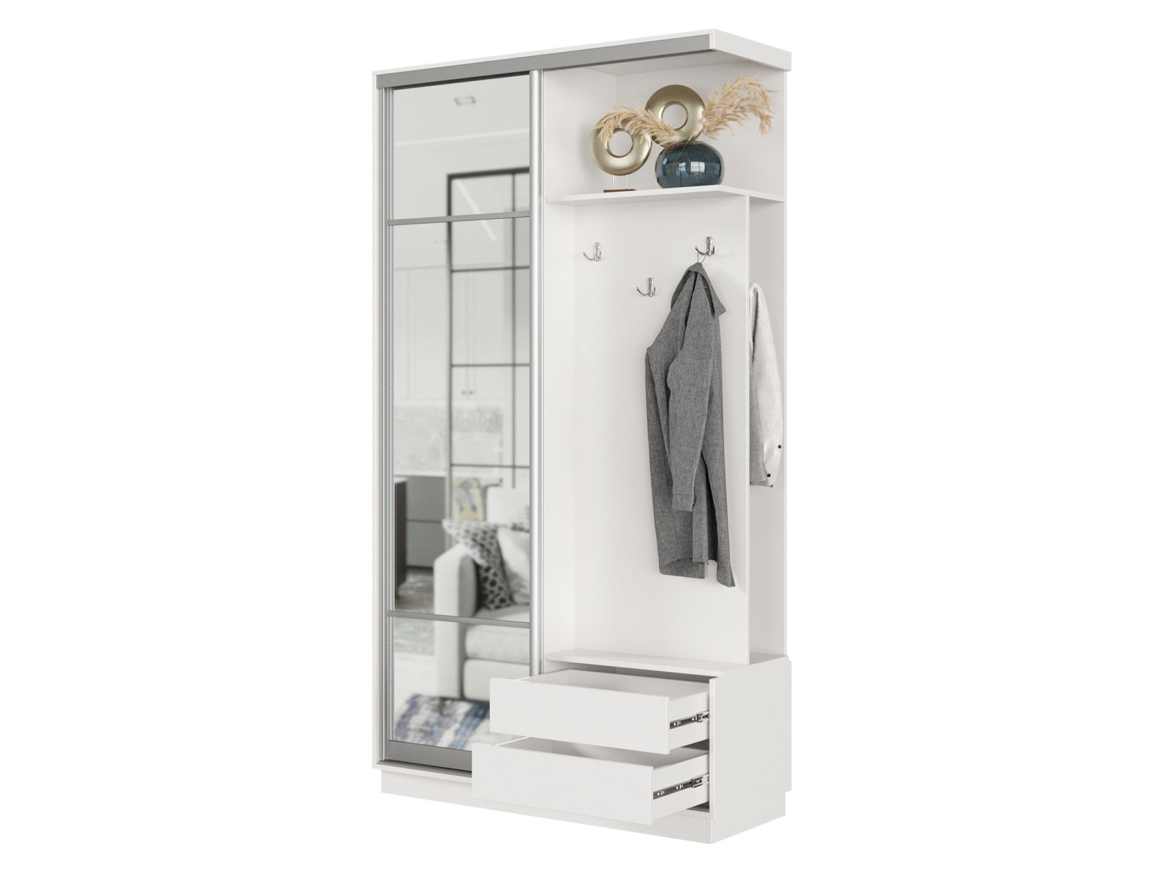 Прихожая Маршал Белый / Зеркало / Серебро, алюминий 100 см 240 см 45 см Правая