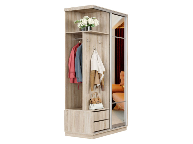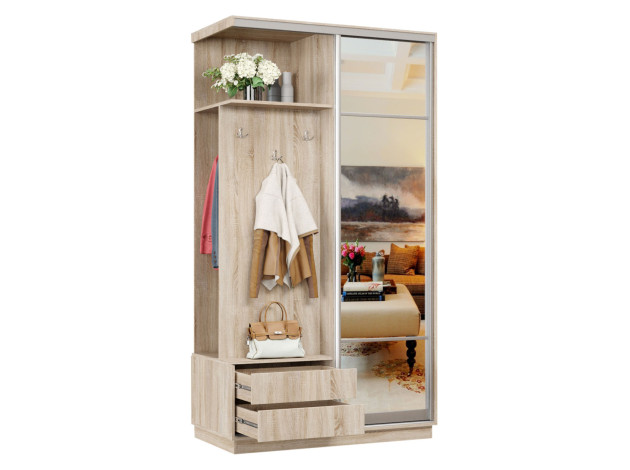 Прихожая Маршал Дуб Сонома / Зеркало / Серебро, алюминий 120 см 220 см 45 см Левая
