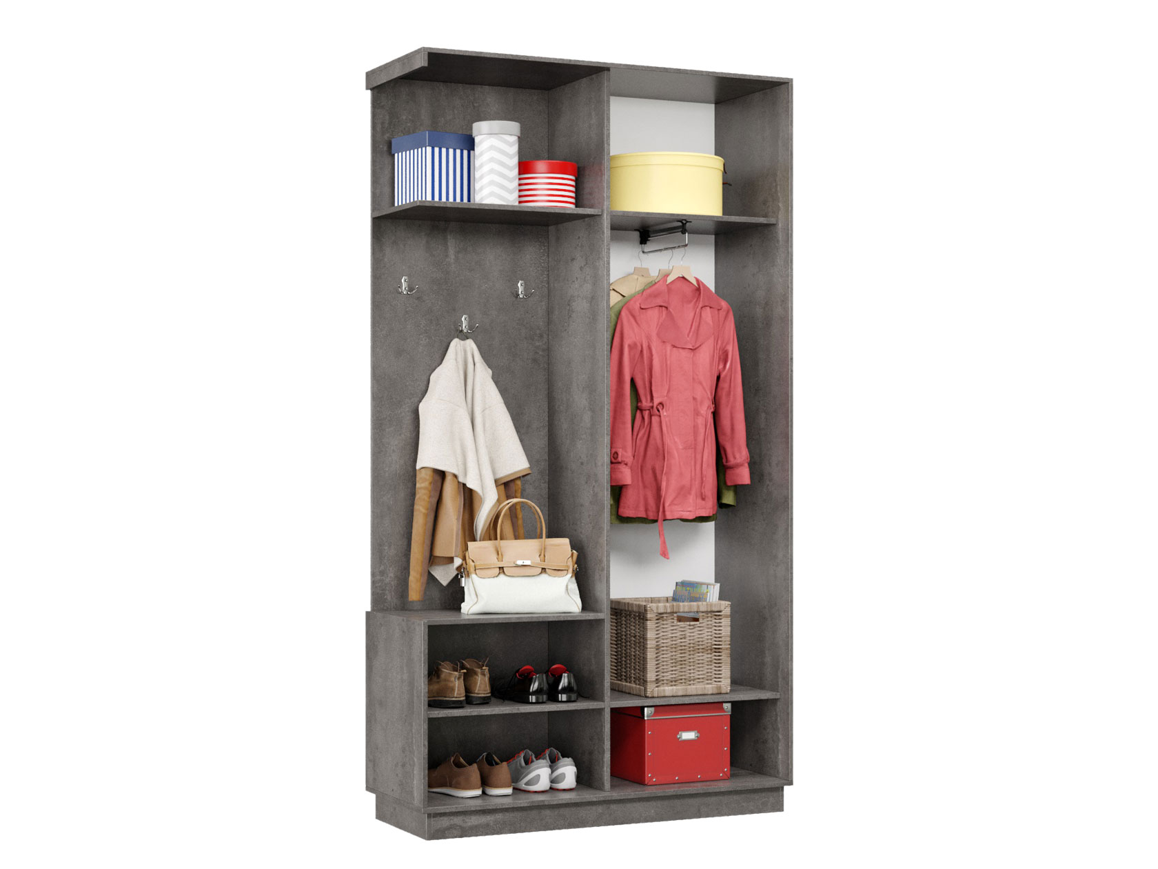 Размер полки над крючками (ШхГ): 37,8 / 52,8 х 57,4 см.
