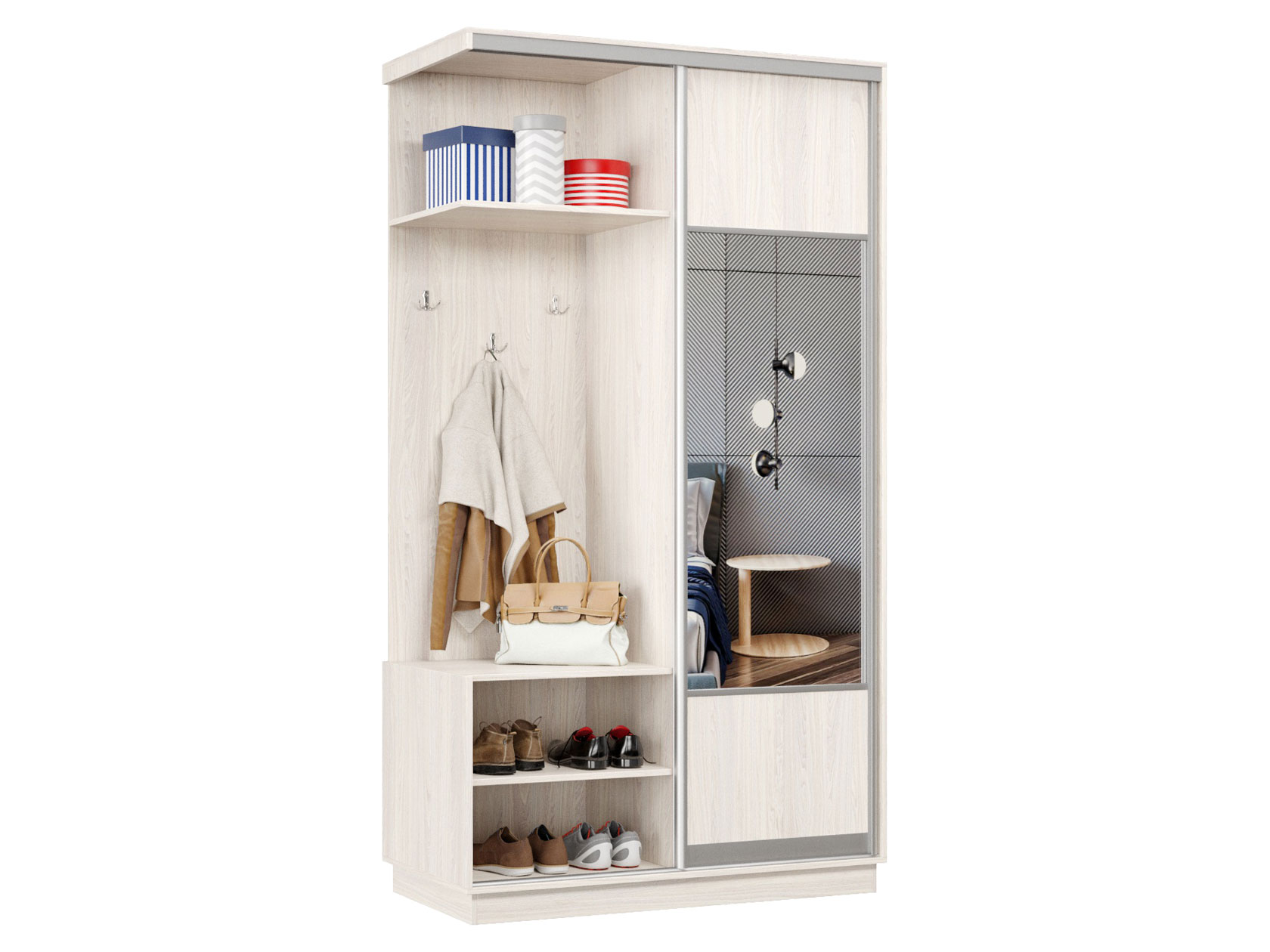 Прихожая Маршал Лайт Ясень анкор светлый / Зеркало / Серебро, алюминий 240 см 60 см Левая