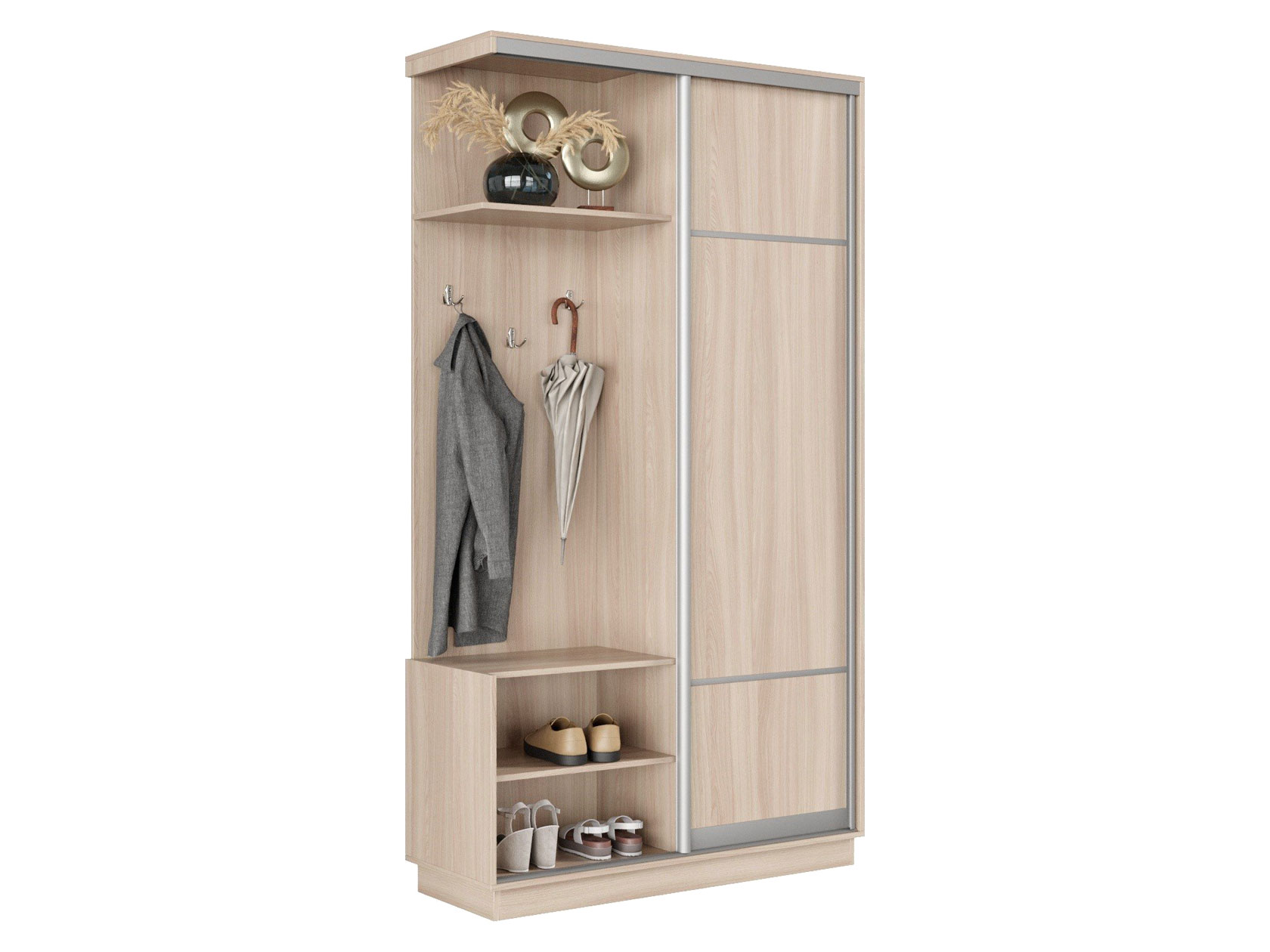 Отличный шкаф в прихожую, долго выбирали, по глубине и ширине и нашли, собрали встал как нужно и очень хорошо смотрится, по функционал все супер, удобно и практично. РЕКОМЕНДУЮ!!!