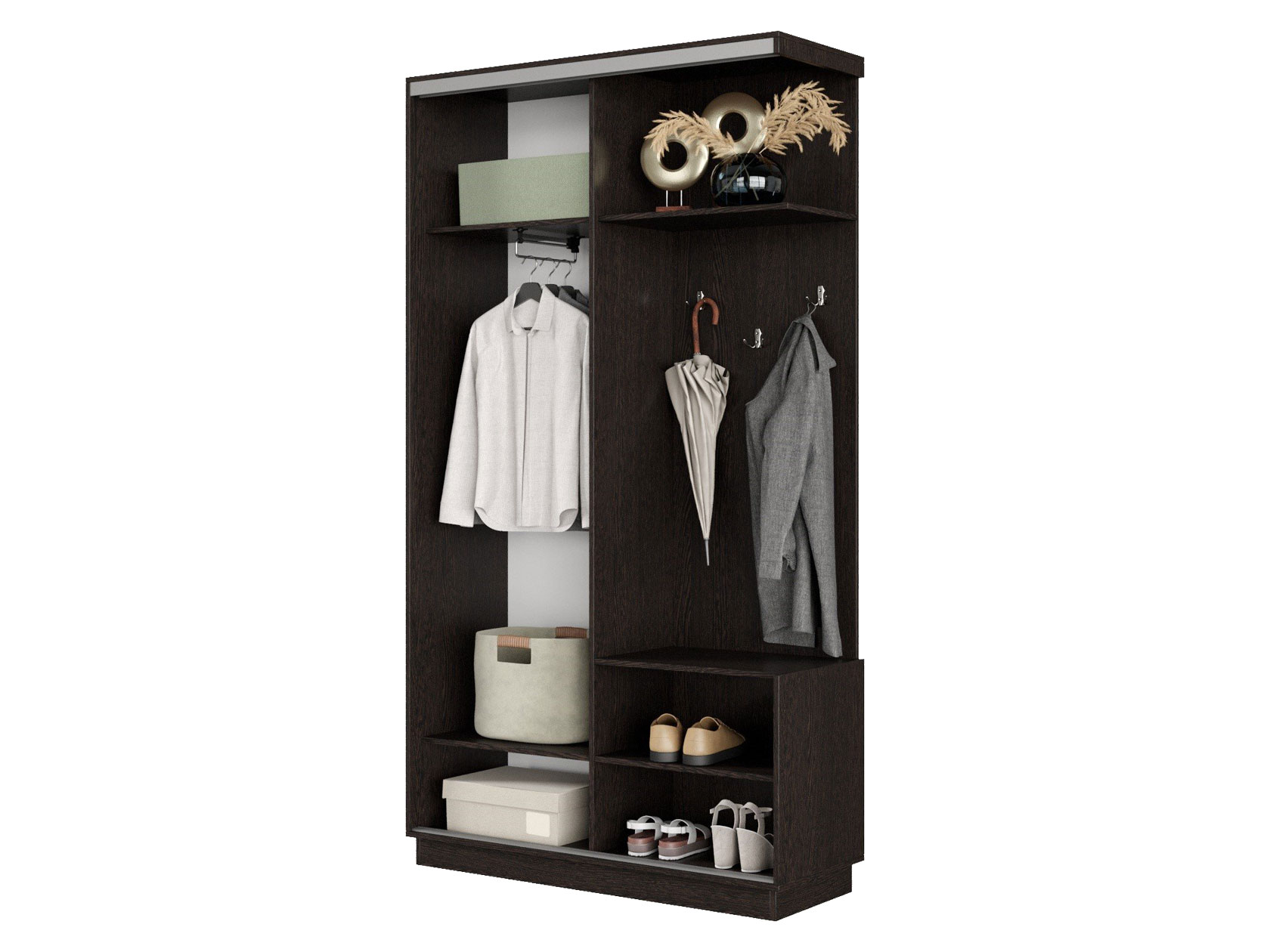 Стандартный шкаф прихожая. Недорогой шкаф. При сборке проблем не вызвал. Есть и отсек нижний под обувь. Есть и полки верхнего хранения. Для маленькой прихожей огонь