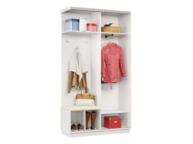 • Прихожая Маршал Лайт подходит для обустройства входной зоны в небольшой квартире. Компактная модель включает два отделения: одно — со штангой для плечиков, а другое — с полками и крючками для повседневных вещей. Раздвижная дверь на однополосном треке обеспечивает быстрый доступ к каждой секции. Мягкое сиденье добавляет комфорт при переобувании. Зеркальный фасад визуально увеличивает пространство и позволяет оценить внешний вид.