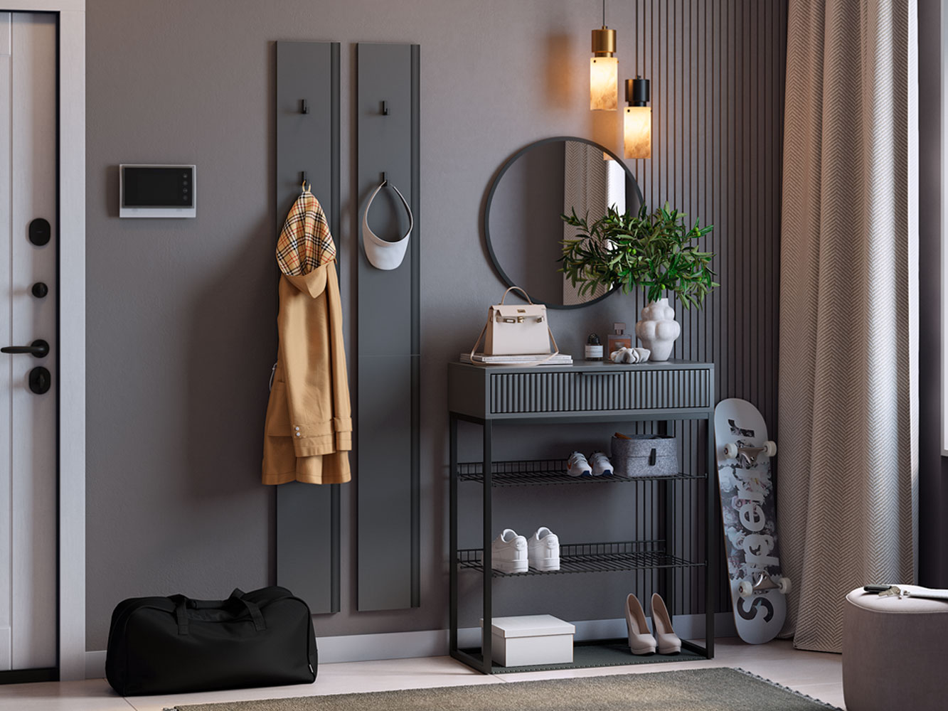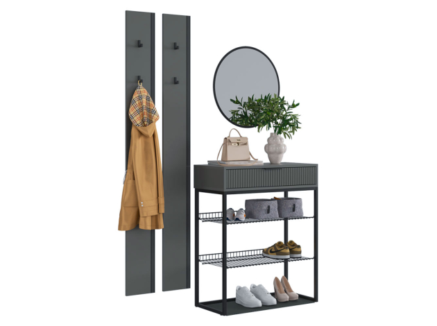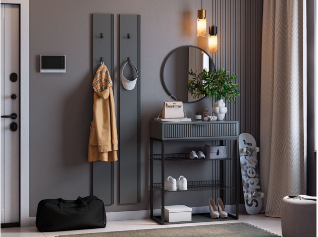 Прихожая Мерси Арт украсит входную зону, обеспечив место для хранения верхней одежды и обуви. Открытые ниши и лаконичные крючки идеально интегрируются в любой стиль интерьера. Выдвижной ящик позволяет быстро находить необходимое перед выходом из дома: средства для ухода за обувью, ключи, очки и косметику.