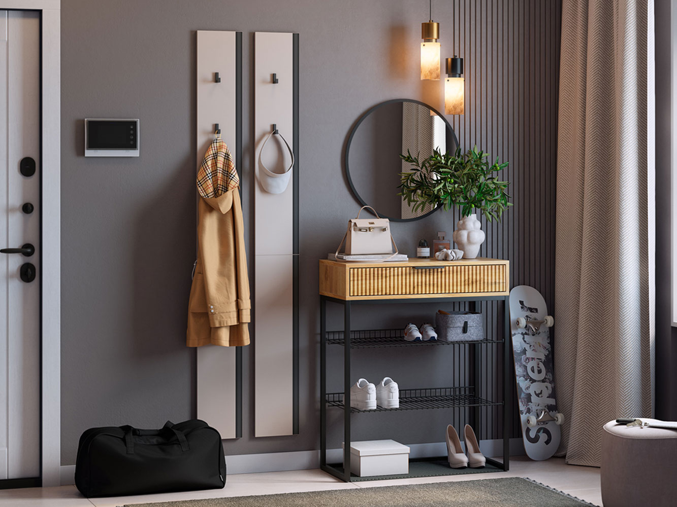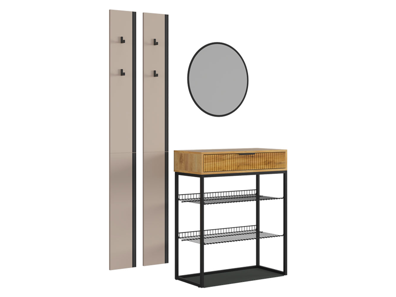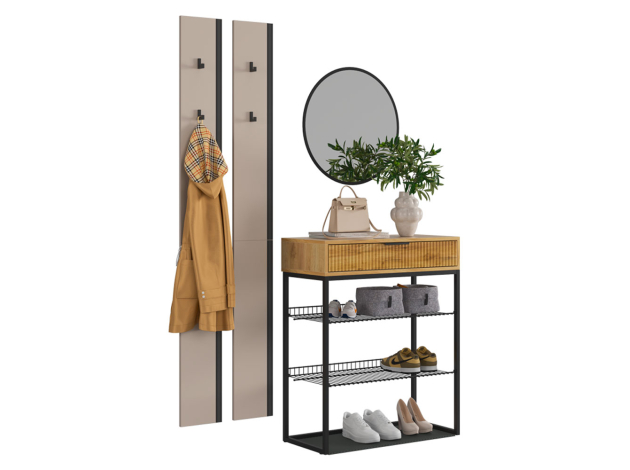 Прихожая Мерси Арт Кашемир / Дуб Крафт золотой / Акация светлая / Черный муар, металл