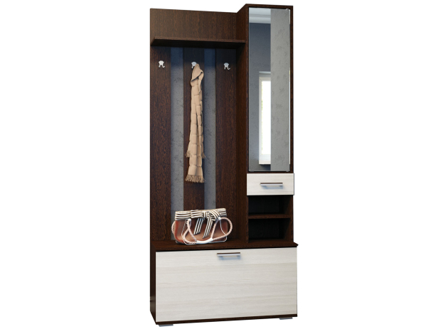 Прихожая Ника — функциональный набор мебели, который подойдет для организации порядка в вещах. Здесь есть всё необходимое для размещения одежды, обуви, головных уборов и аксессуаров. Современный дизайн гармонично дополнит интерьер входной зоны.