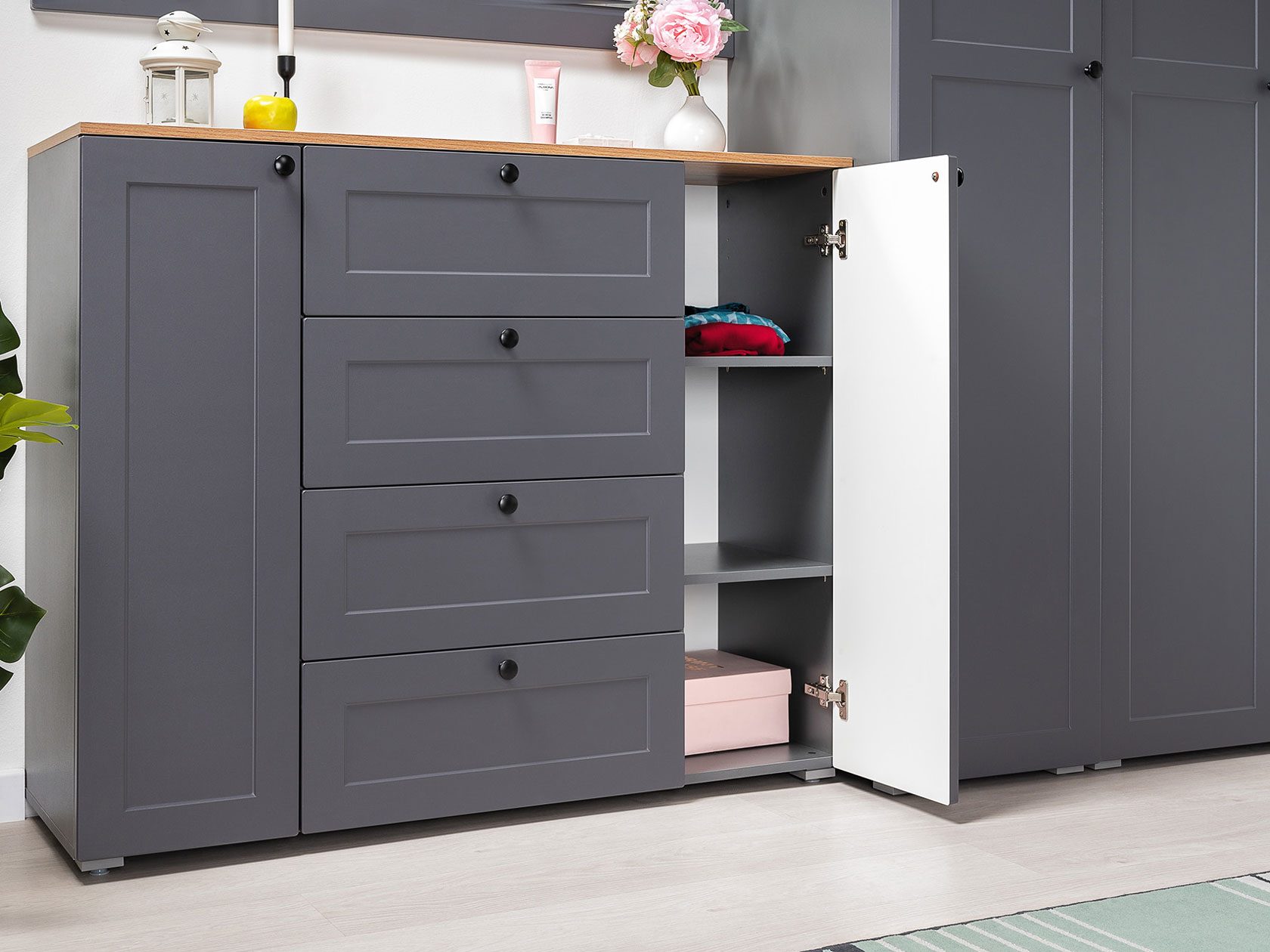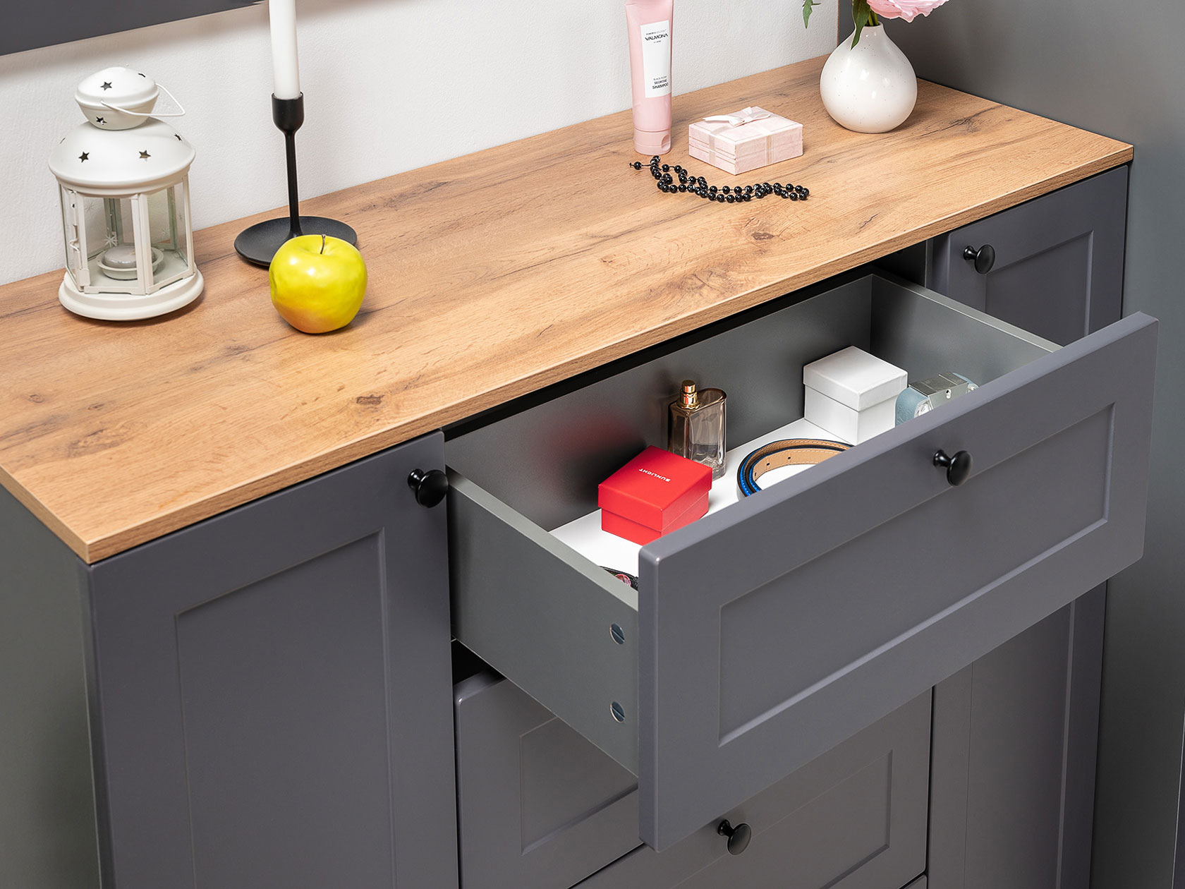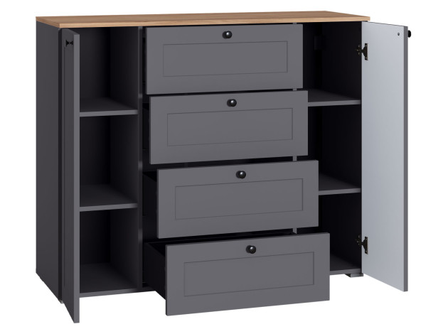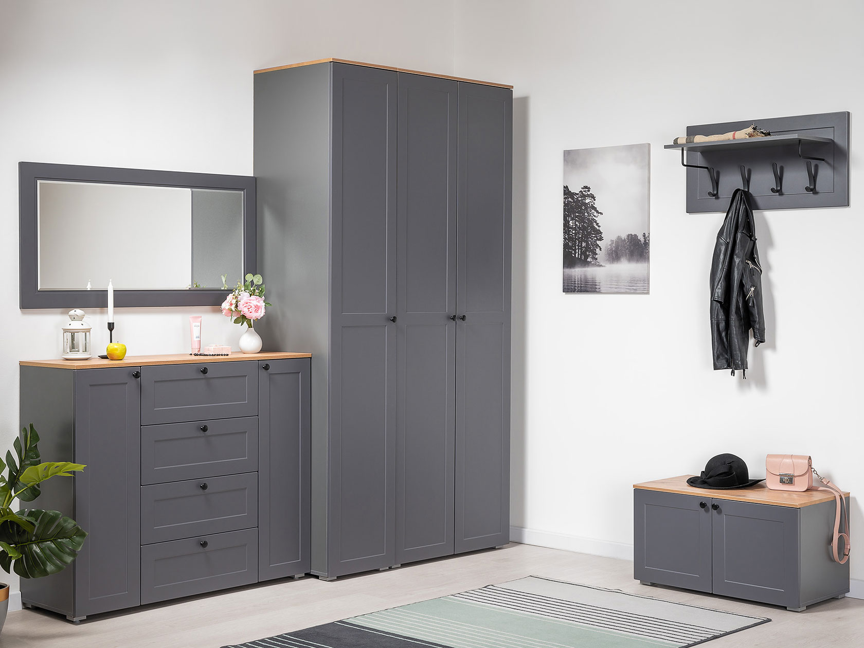 Прихожая Остин Мульти поможет практично и со вкусом оформить пространство. Классический дизайн с элегантными рамочными фасадами создает уютную атмосферу. Регулируемые опоры придают мебели устойчивость, а лаконичная фурнитура не привлекает лишнего внимания. Благодаря шариковым направляющим и петлям с доводчиками ящики и дверцы открываются и закрываются плавно и бесшумно.