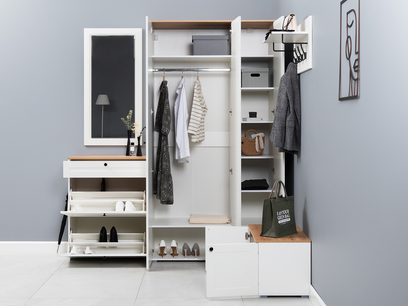 Прихожая Остин Белый шагрень / Дуб Крафт золотой