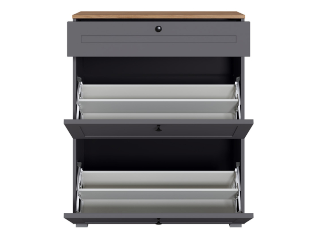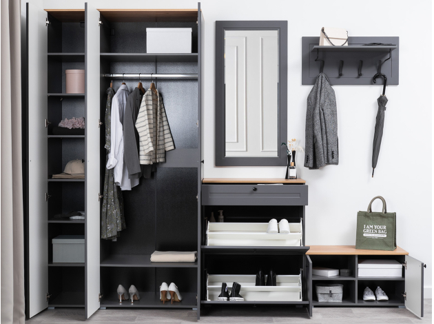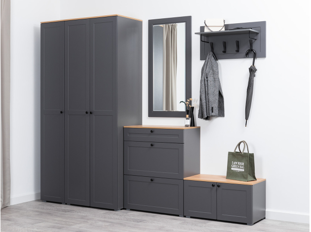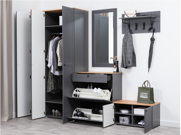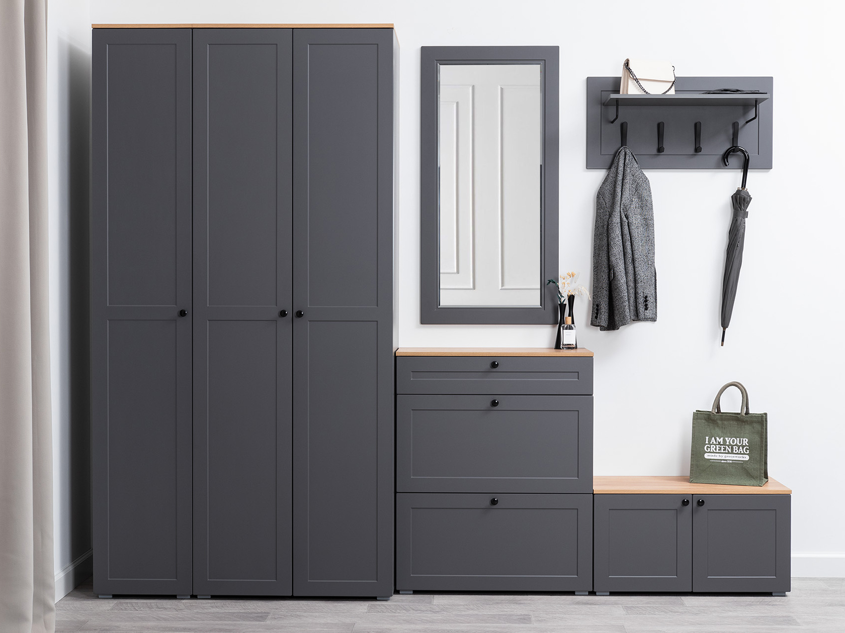 Прихожая Остин позволит оптимально организовать хранение гардероба. Визуальный облик сочетает лаконичные формы, прямые линии и контрастную металлическую фурнитуру. Ящик оснащен направляющими скрытого монтажа, что обеспечит выдвижение на всю глубину, плавный бесшумный ход и длительный срок эксплуатации. Опоры регулируются по высоте, что позволит разместить мебель на полу с неровностями.