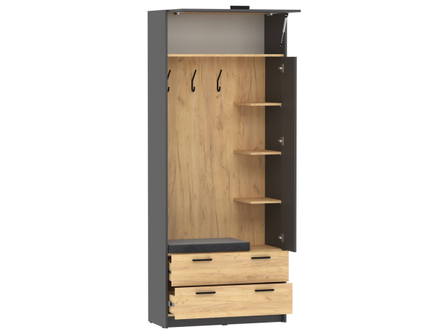 Прихожая Оттавия — современное функциональное решение для организации пространства входной группы. Удобные шкафы подойдут для хранения верхней одежды и обуви, а полки и ящики — аксессуаров.