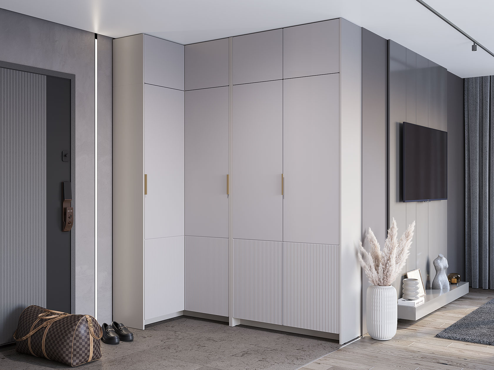 Прихожая Пандора Моно поможет практично обустроить входную зону, обеспечив порядок даже на ограниченной площади. Внутри распашных шкафов достаточно места для хранения сезонной и повседневной одежды, а также обуви и аксессуаров. Фактурная отделка нижней части фасадов придает пространству визуальный объем. Акцентные ручки выступают привлекательными деталями интерьера.
