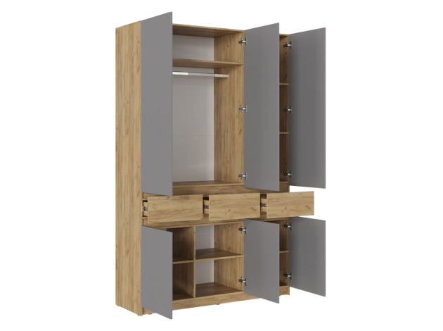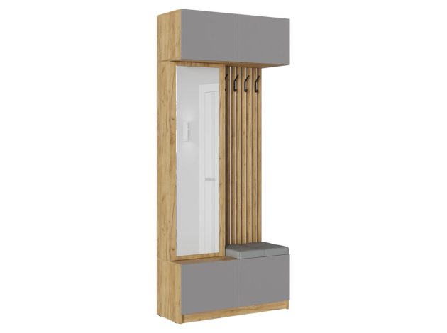 Прихожая Бостон идеально подойдет для хранения предметов гардероба и различных мелочей. Наполнение представлено множеством полок, выдвижными ящиками, нишами за распашными дверцами и отделением с продольной штангой. Мягкое сиденье позволит удобно переобуваться, а высокое зеркало — оценить свой образ перед выходом из дома.