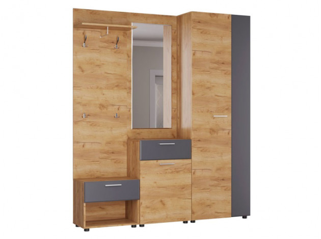 Прихожая Сафари — компактный и стильный вариант для меблировки небольшого уютного помещения. Модель сочетает в себе всё необходимое для хранения верхней одежды, обуви и нужных под рукой мелочей.