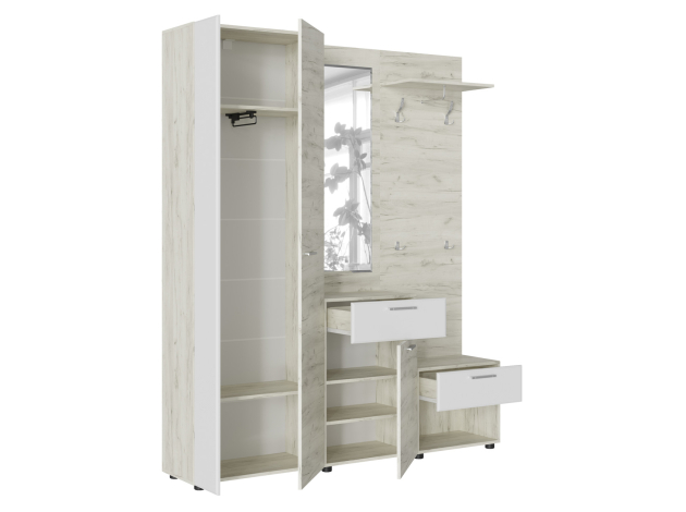 Прихожая Сафари — компактный и стильный вариант для меблировки небольшого уютного помещения. Модель сочетает в себе всё необходимое для хранения верхней одежды, обуви и нужных под рукой мелочей.