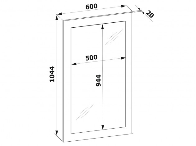 - Материал: зеркало 4 мм, ЛДСП 16 мм, кромка ПВХ 0,4 мм.