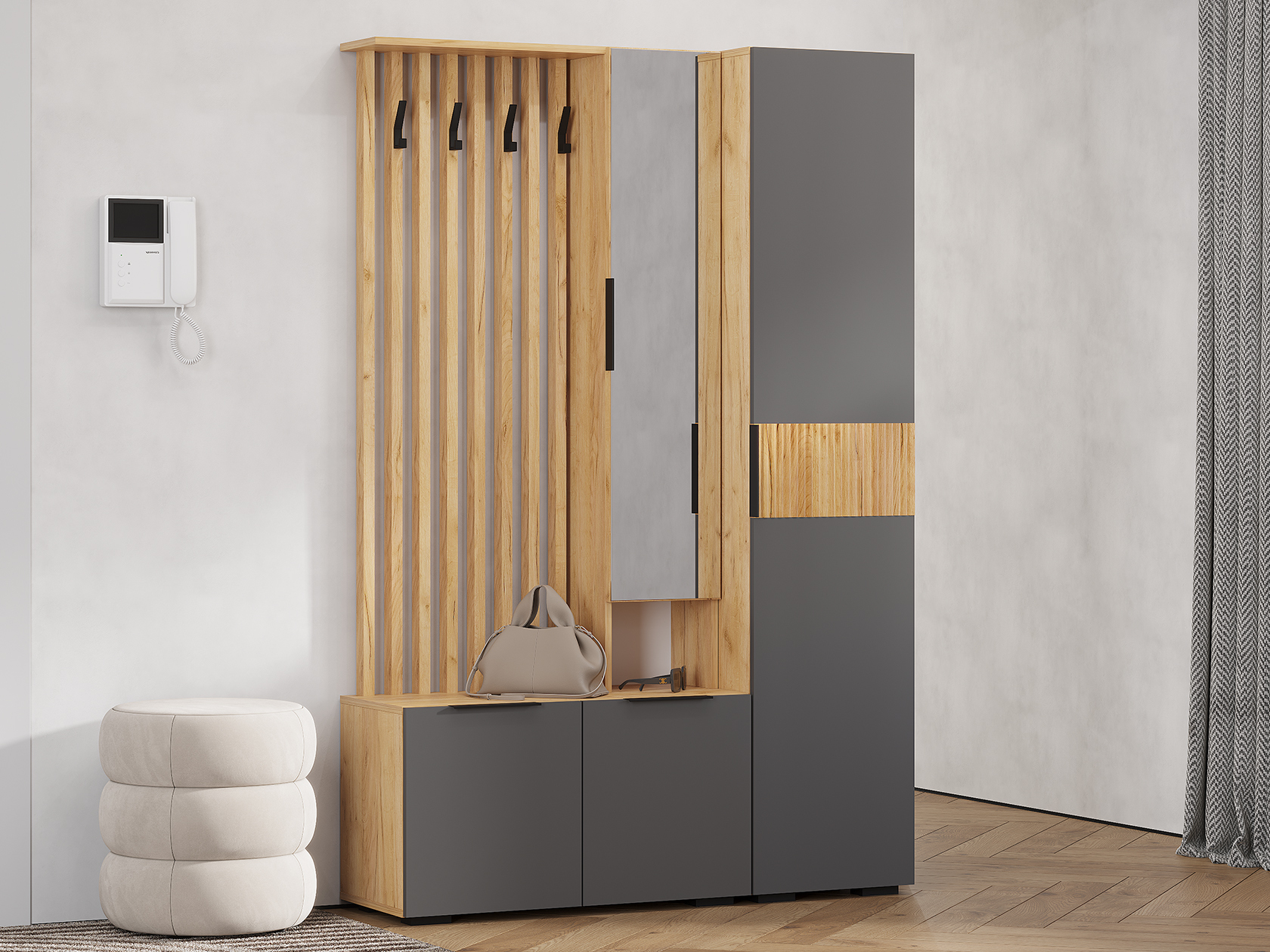 Прихожая Сандра Дуб Крафт / Графит Без антресоли