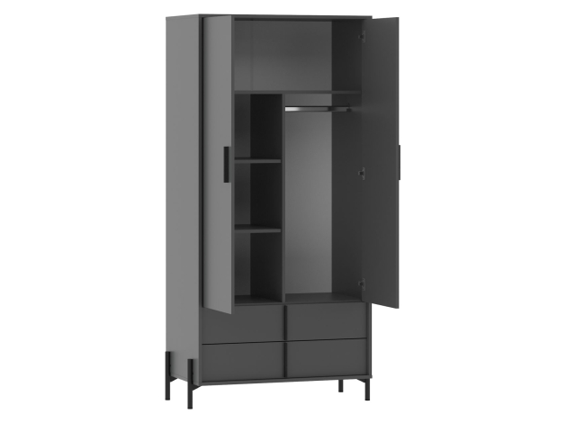 Прихожая Тео поможет аккуратно хранить верхнюю одежду и необходимые перед выходом из дома вещи. Подвесная тумба с выдвижными ящиками обеспечит доступ к ключам, очкам и прочим полезным мелочам. В дизайне сделан акцент на простую геометрию и лаконичность, что позволяет интегрировать мебель во множество современных интерьеров.