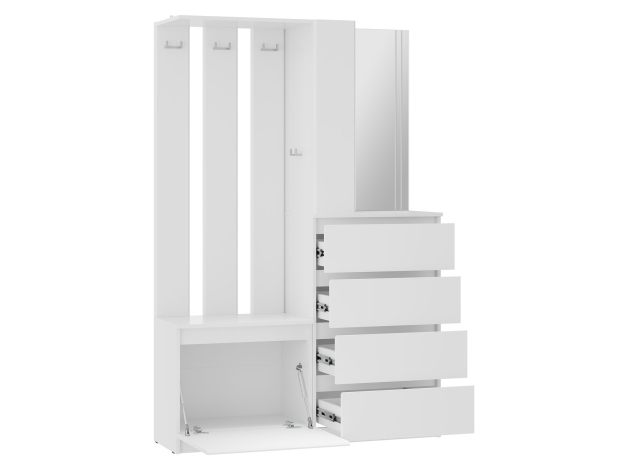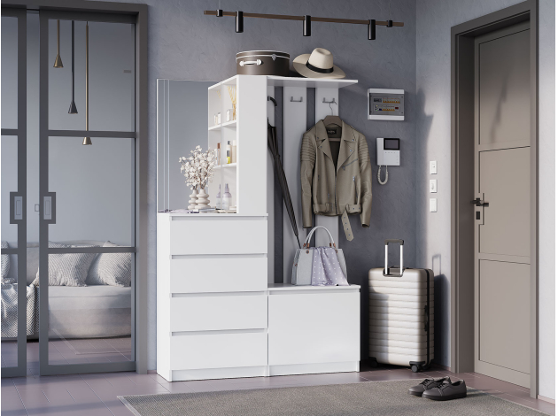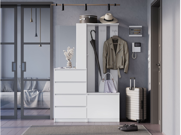 Прихожая Симпл — идеальное решение для хранения одежды и обуви. Дизайн сочетает в себе четкие линии, простоту и функциональность. Модель добавит входной группе гармонии и упорядоченности. Удобные ящики и крючки для верхней одежды и сумок позволяют аккуратно расположить предметы гардероба.