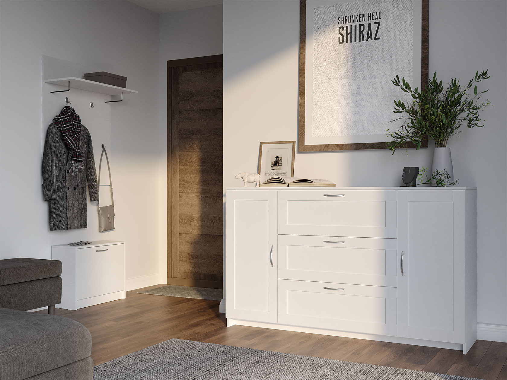 Прихожая Сириус — практичное решение для организации входной зоны в квартире. Комбинация функциональных элементов обеспечит удобное хранение обуви и верхней одежды. Вешалка удобна для размещения различных мелочей вроде ключей, сумок и аксессуаров.