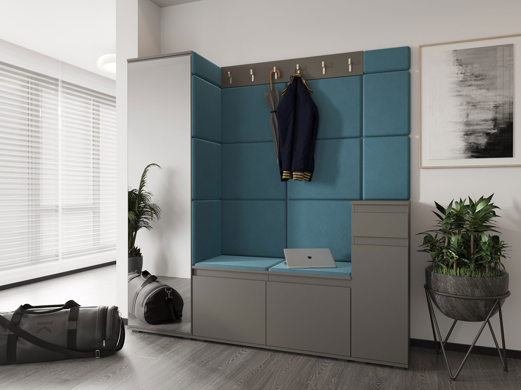 Прихожая Старк Серый графит / Бирюзовый, велюр / Зеркало