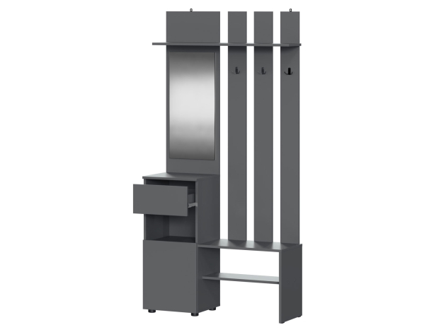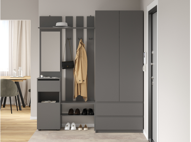 Прихожая Диксон объединила функциональные элементы с удобным и продуманным наполнением. На полках, нишах и в ящиках найдется место для всех необходимых вещей: от верхней одежды до связки запасных ключей. Минималистичное оформление смотрится очень актуально и удачно сочетается с разными интерьерными решениями.