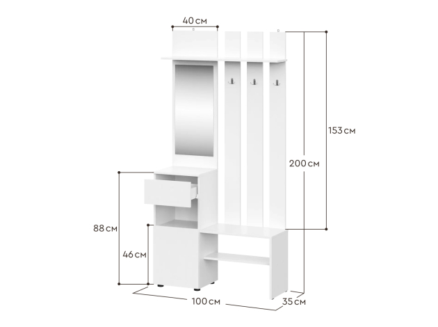 - Вместимость обувницы: 3 пары.