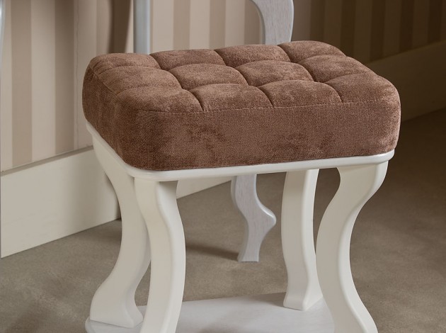 Ножки банкетки изготавливаются из массива бука, полочка покрыта шпоном дуба. Все деревянное основание покрывается лаком. Обивка сидения — износостойкая и устойчивая к истиранию велюровая ткань SOFTNESS цвета JAVA, которую легко чистить с помощью влажной мыльной губки.